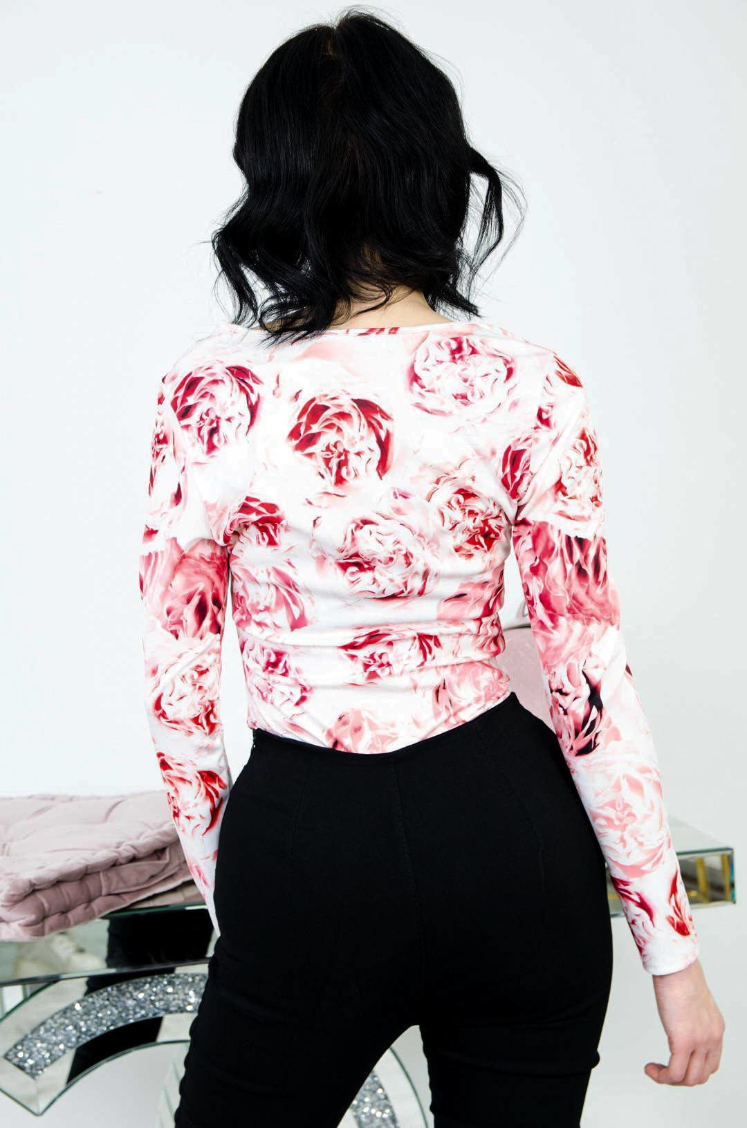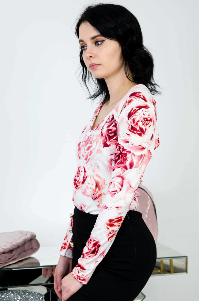 BIAŁE BODY Z DŁUGIM RĘKAWEM W CZERWONE KWIATY