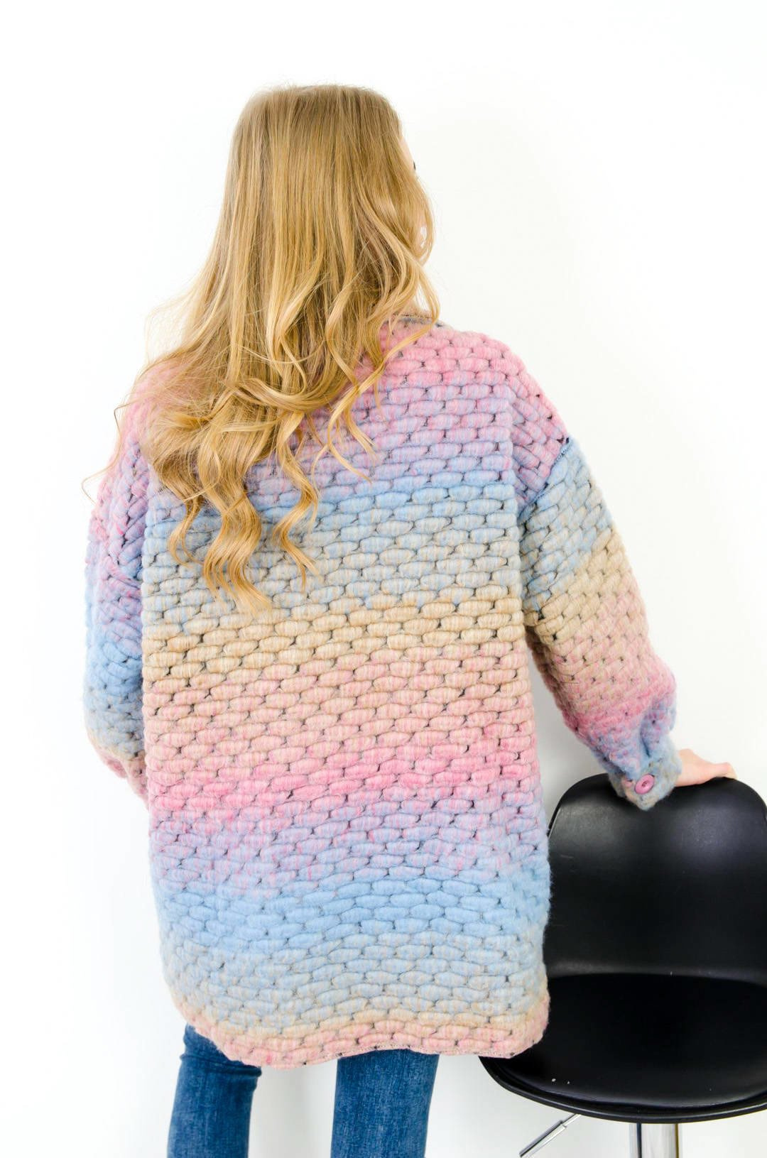 WIOSENNY PŁASZCZYK MULTIKOLOR - NIEBIESKO-RÓŻOWY