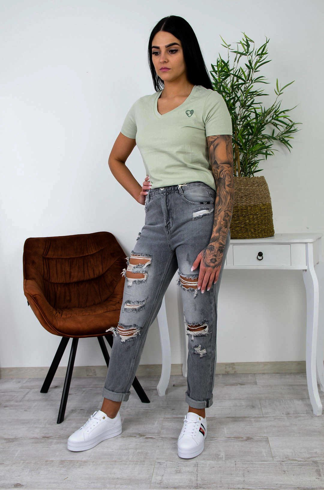 ZIELONY BAWEŁNIANY T-SHIRT W SZPIC Z SERDUSZKIEM