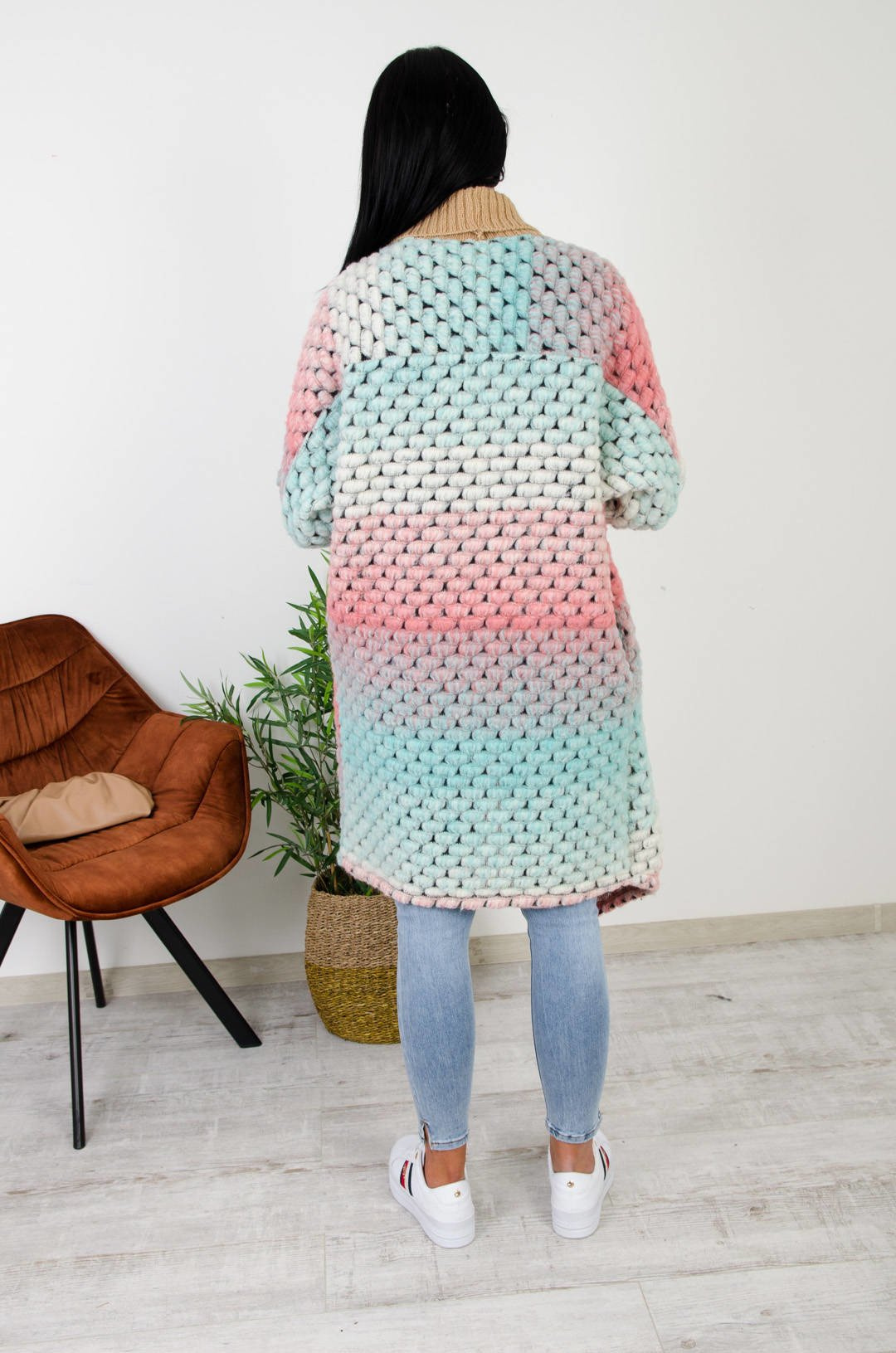WIOSENNA NARZUTKA MULTICOLOR Z BRĄZOWYM ŚCIĄGACZEM-ZIELONA
