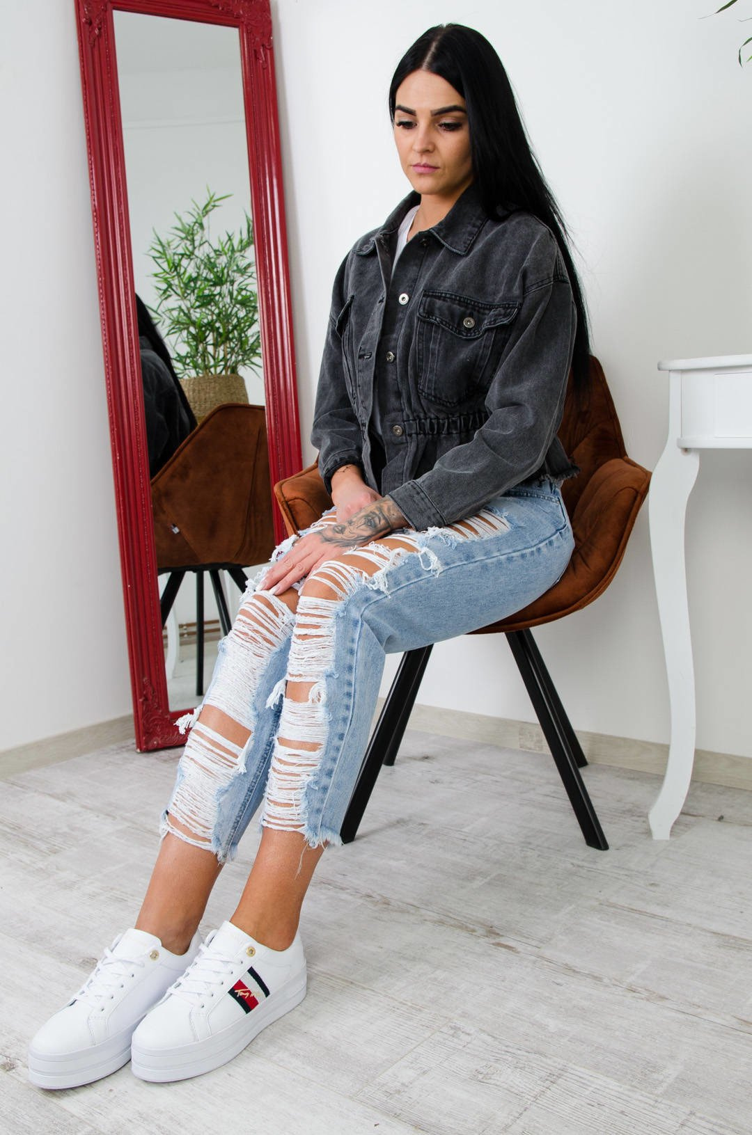 CIEMNO SZARA KURTKA JEANSOWA Z MARSZCZENIEM