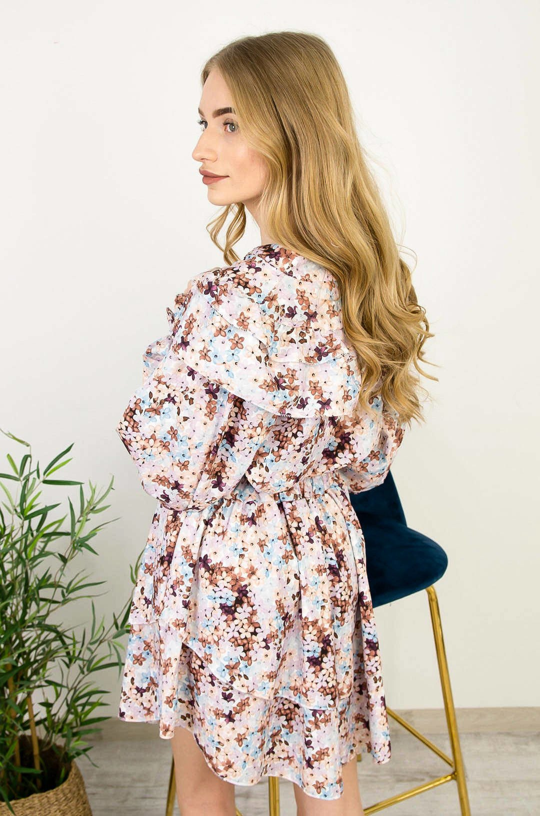 KWIECISTA SUKIENKA Z FALBANAMI ORAZ GUMKĄ W PASIE