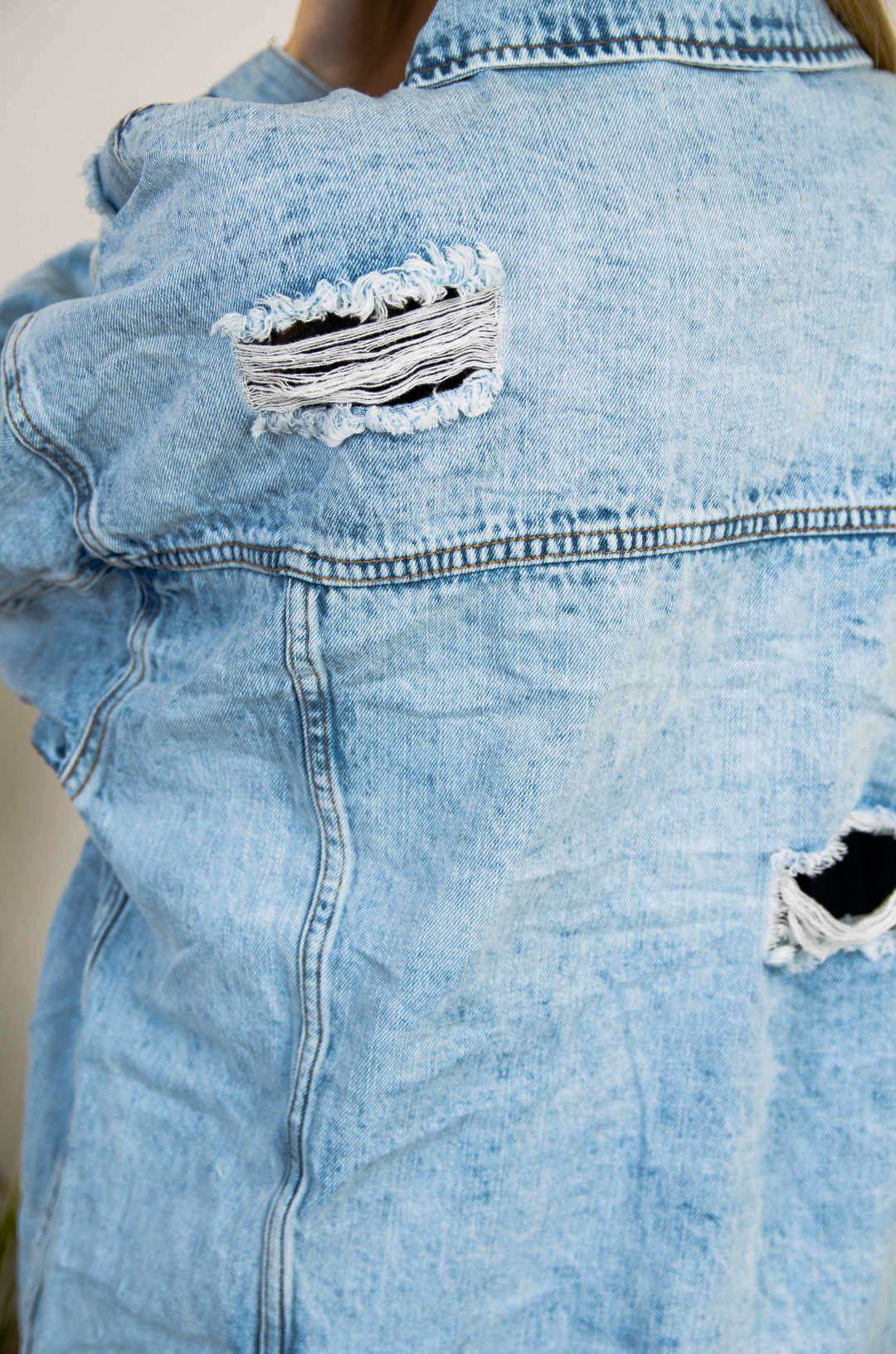 DŁUGA KURTKA JEANSOWA Z PRZETARCIAMI ( DUŻE ROZMIARY M-3XL )