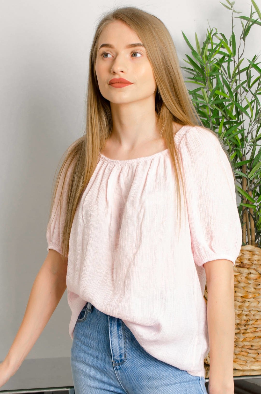 RÓŻOWA BLUZKA Z KWADRATOWYM DEKOLTEM