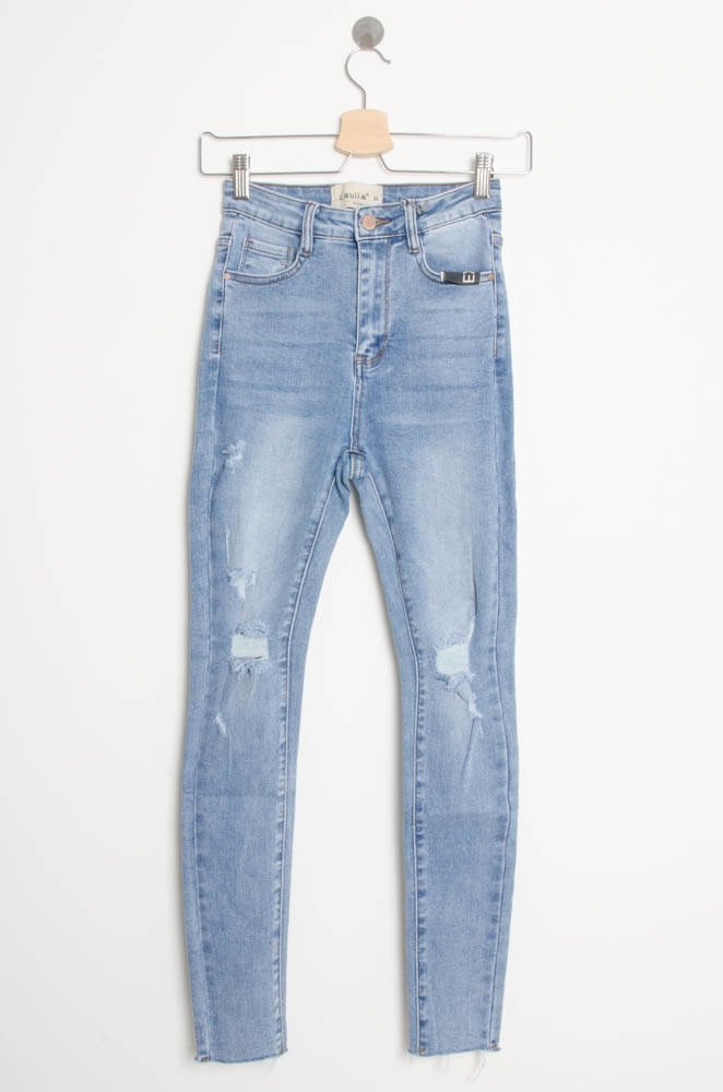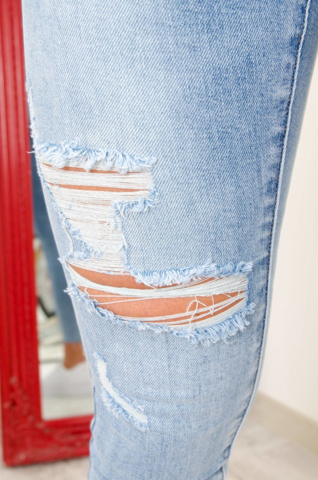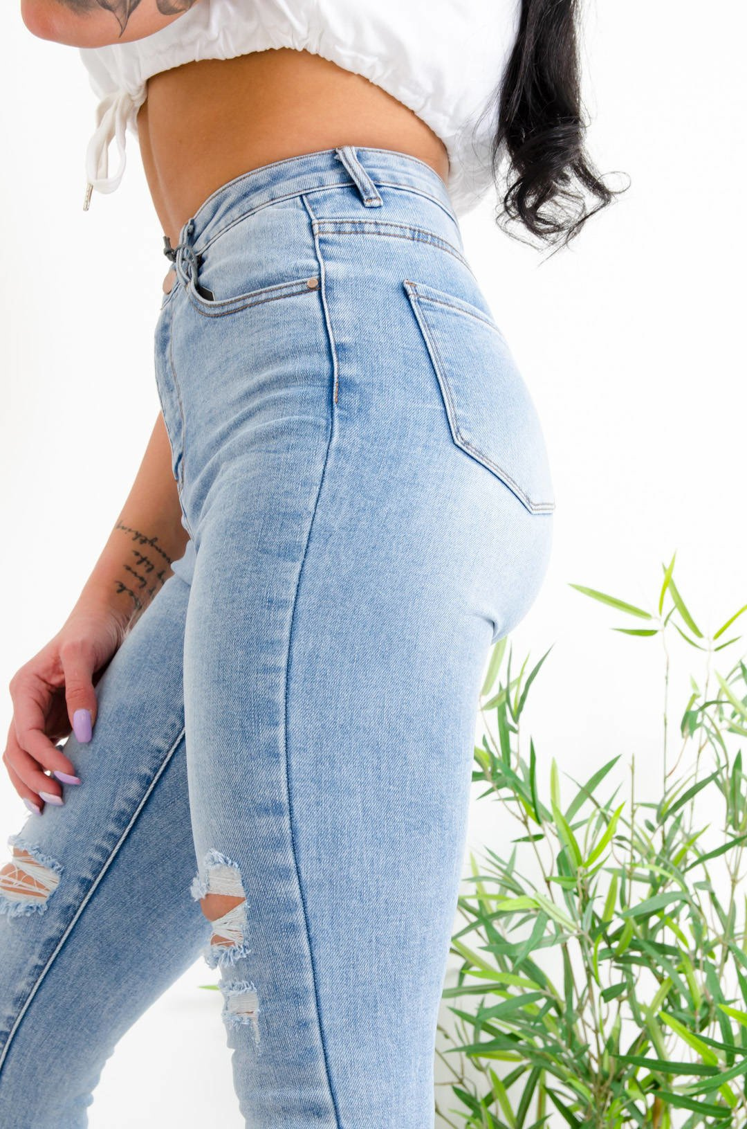 JASNE SPODNIE JEANSOWE Z PRZETARCIAMI-WYSOKI STAN