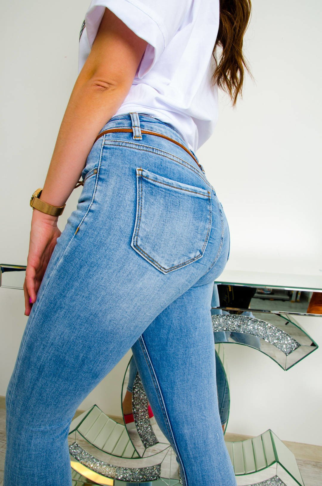 JASNE DOPASOWANE SPODNIE JEANSOWE Z RZEMYKIEM