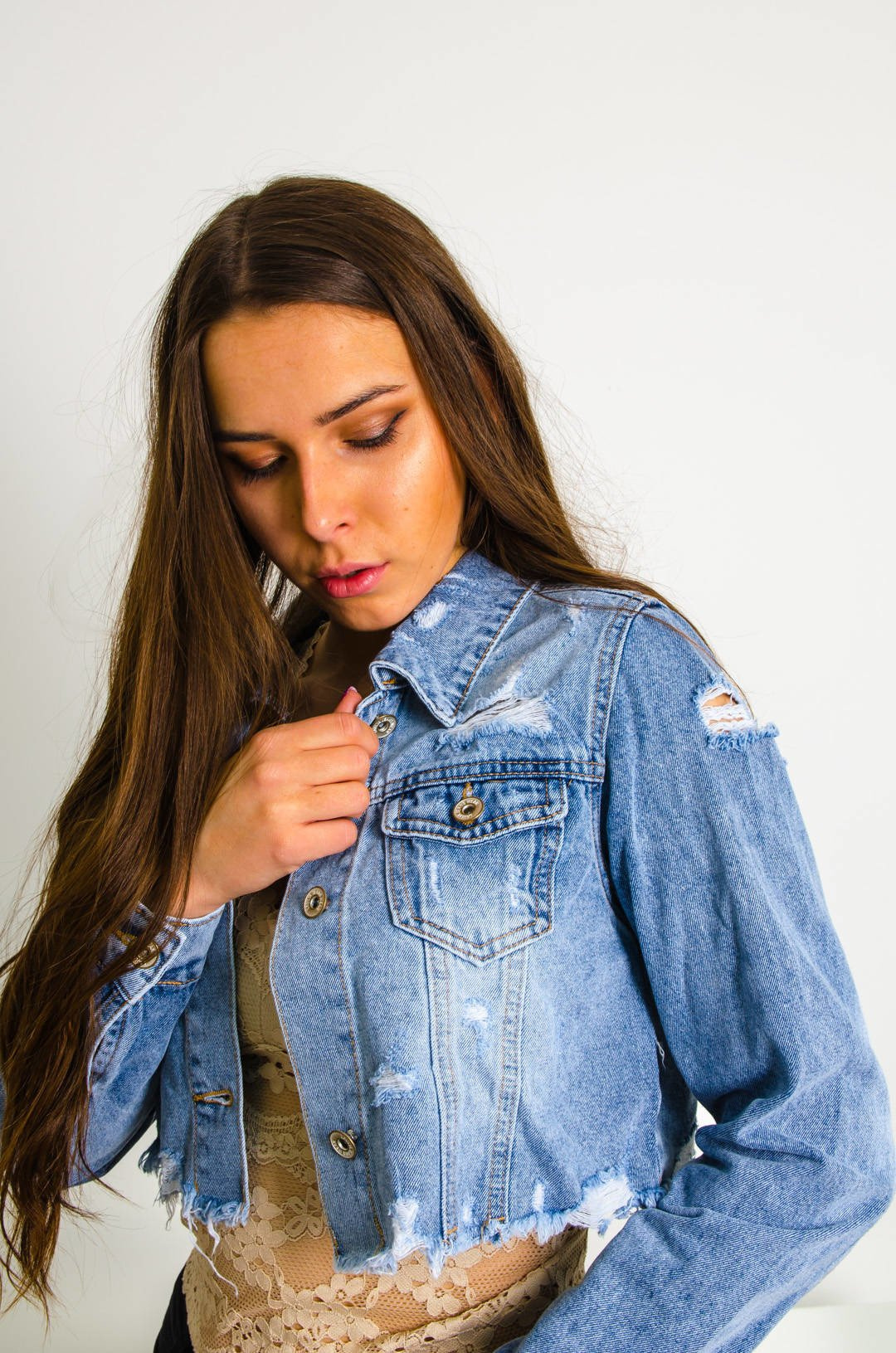 NIEBIESKA KURTKA JEANSOWA KRÓTKA-POSZARPANA