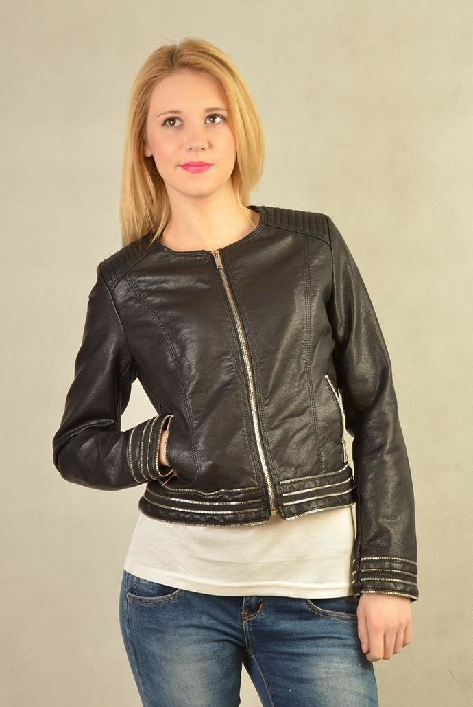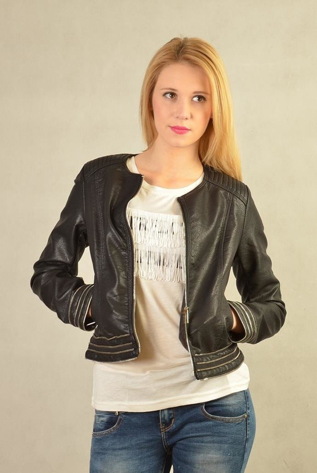 Kurtka zapinana na suwak, wykonana ze skóry ekologicznej, po bokach dwie zapinane kieszenie. Przy rękawach, oraz u dołu ozdobne zamki.