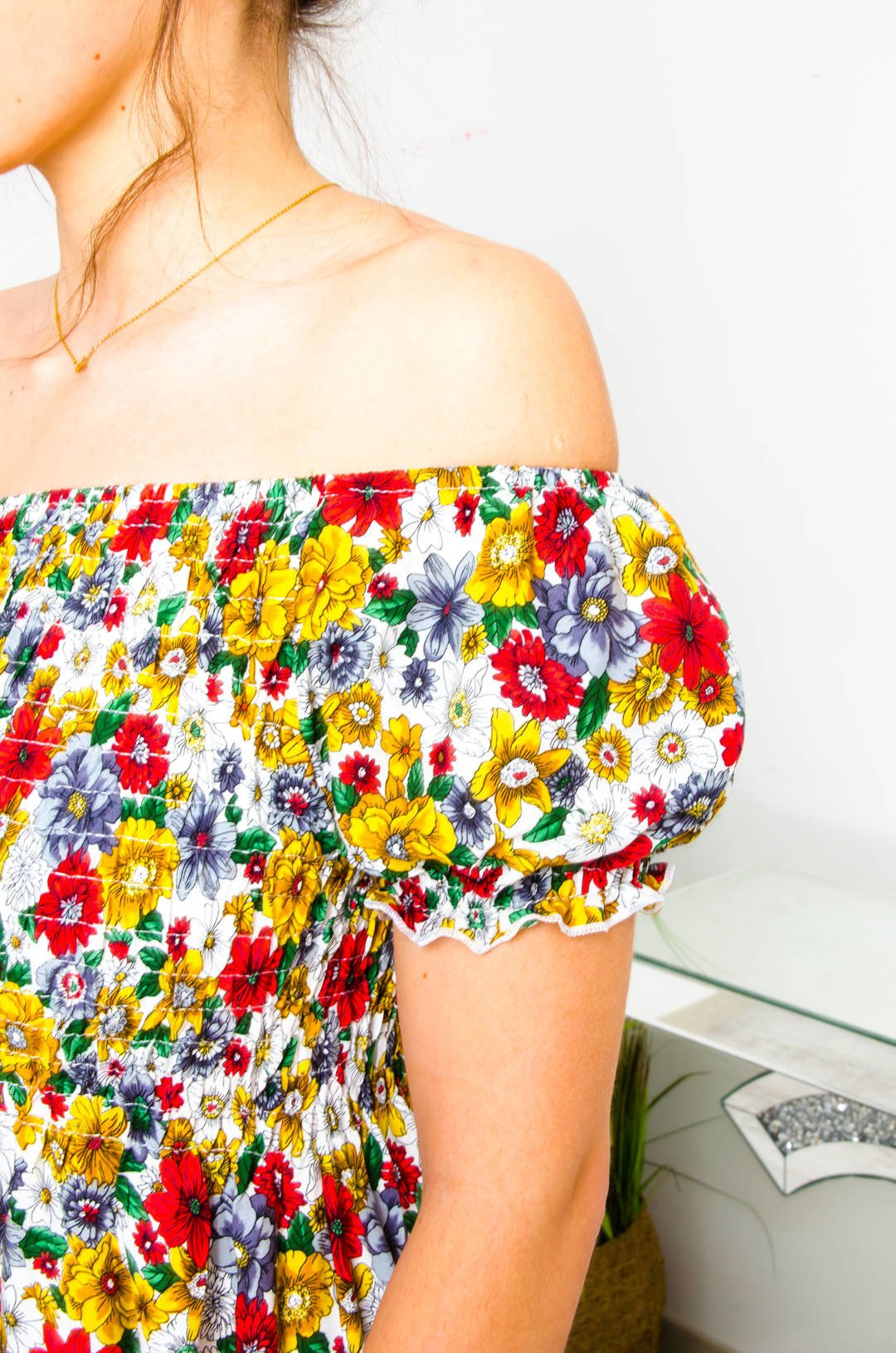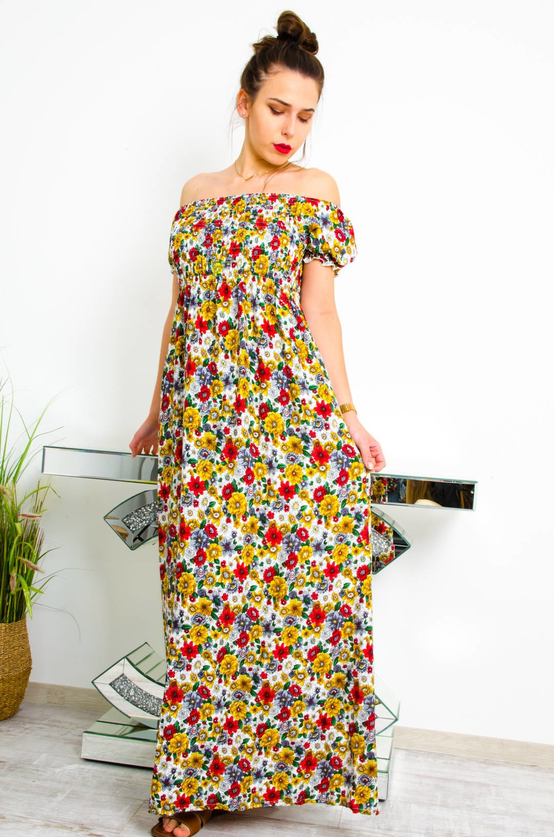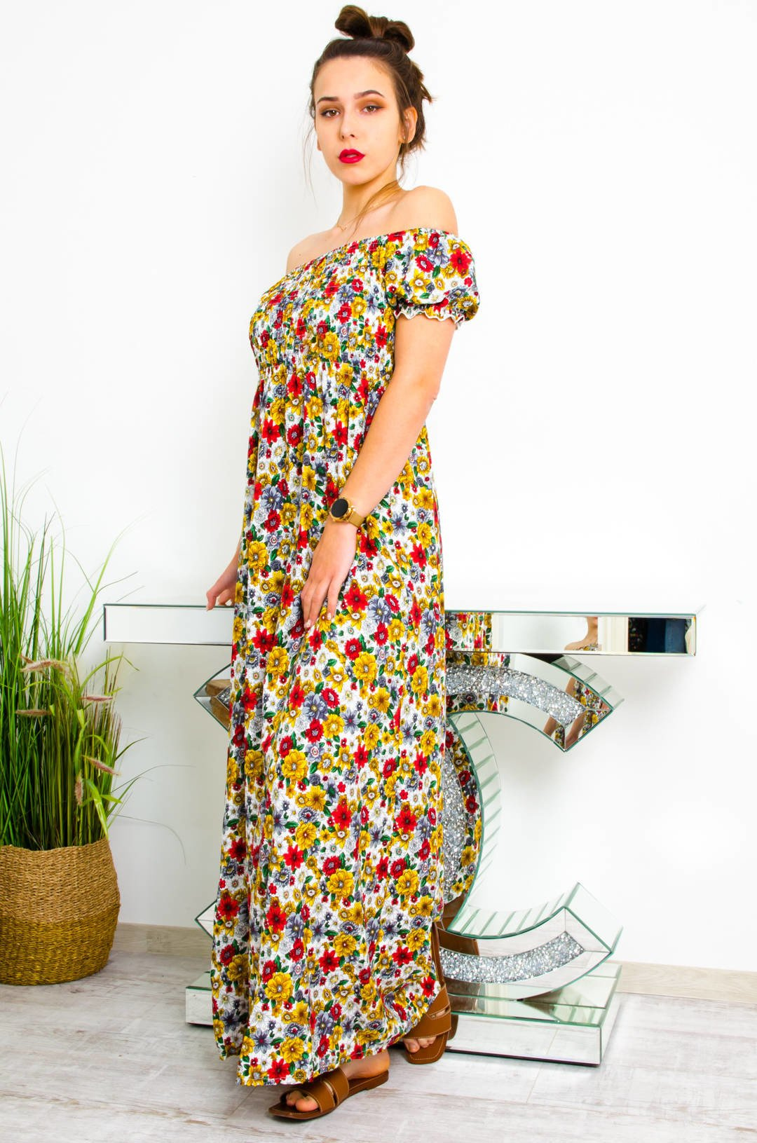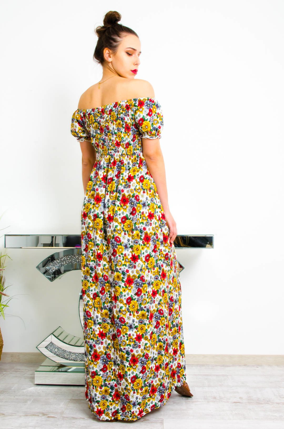 BIAŁA DŁUGA SUKIENKA HISZPANKA W KWIATY