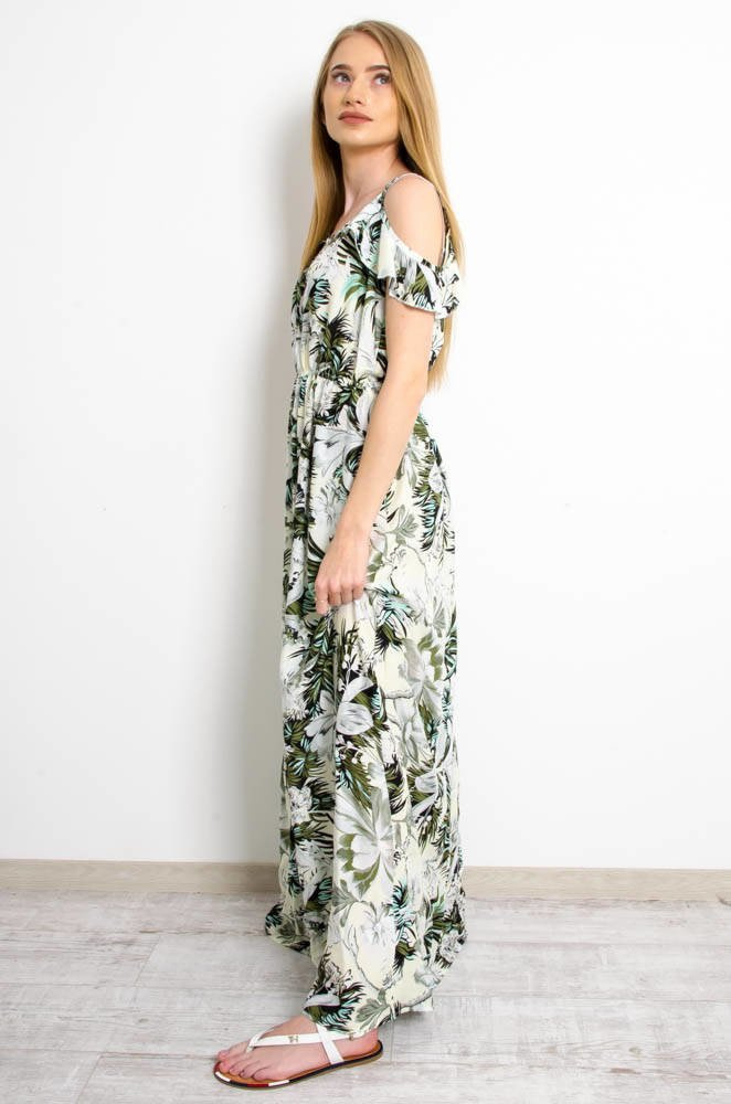 JASNOZIELONA SUKIENKA MAXI W KWIATOWY WZÓR