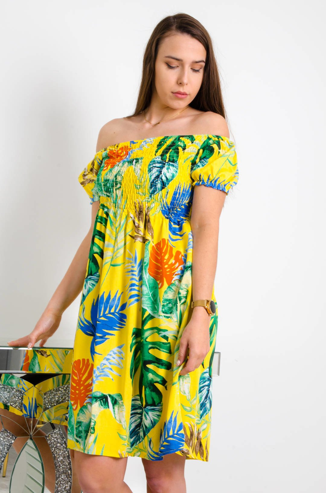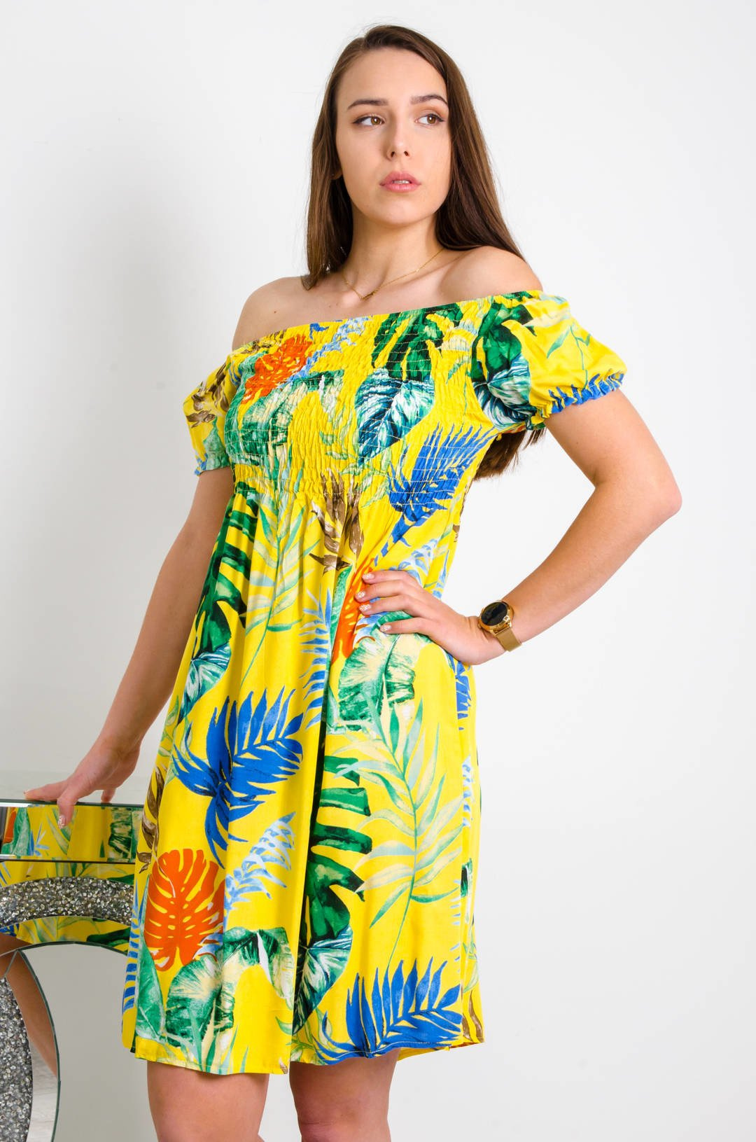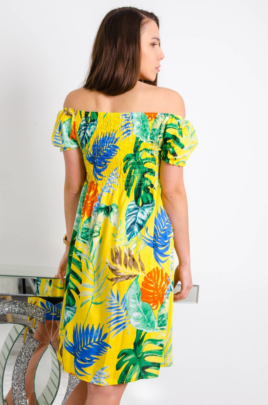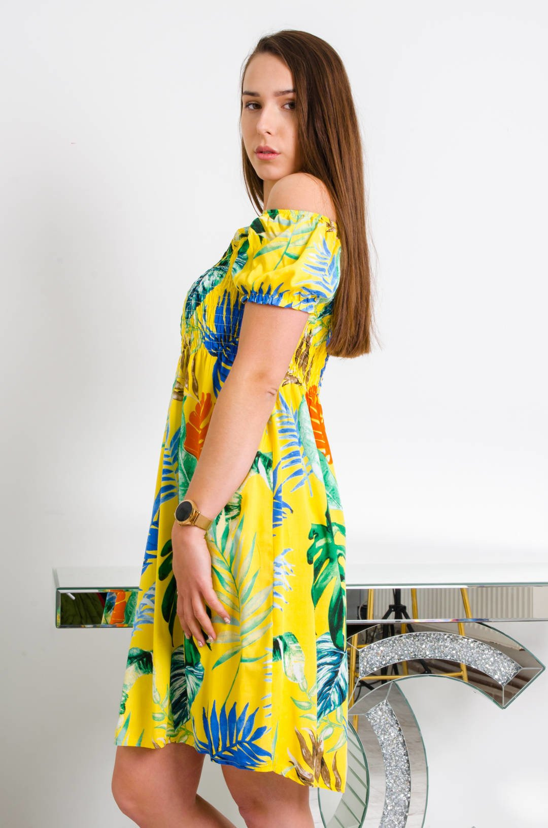 SUKIENKA HISZPANKA Z MOTYWEM KWIATÓW W KOLORZE ŻÓŁTYM