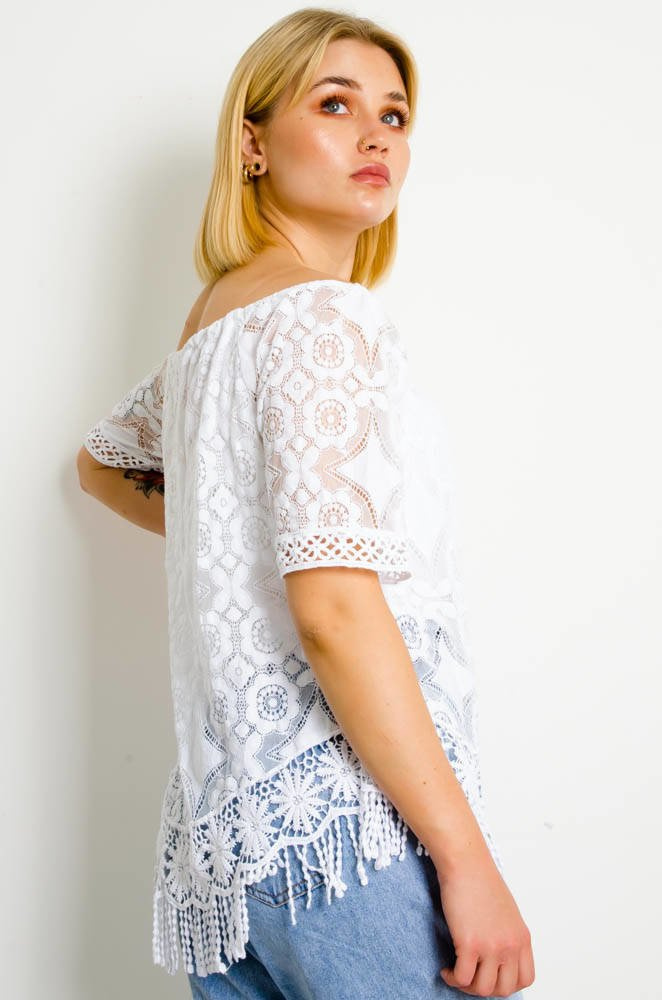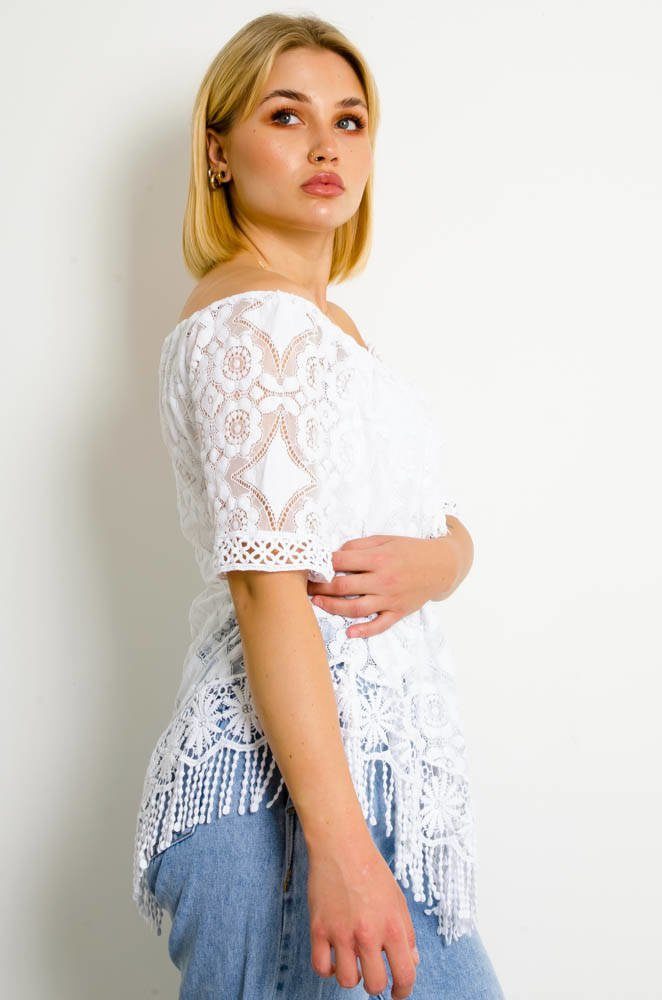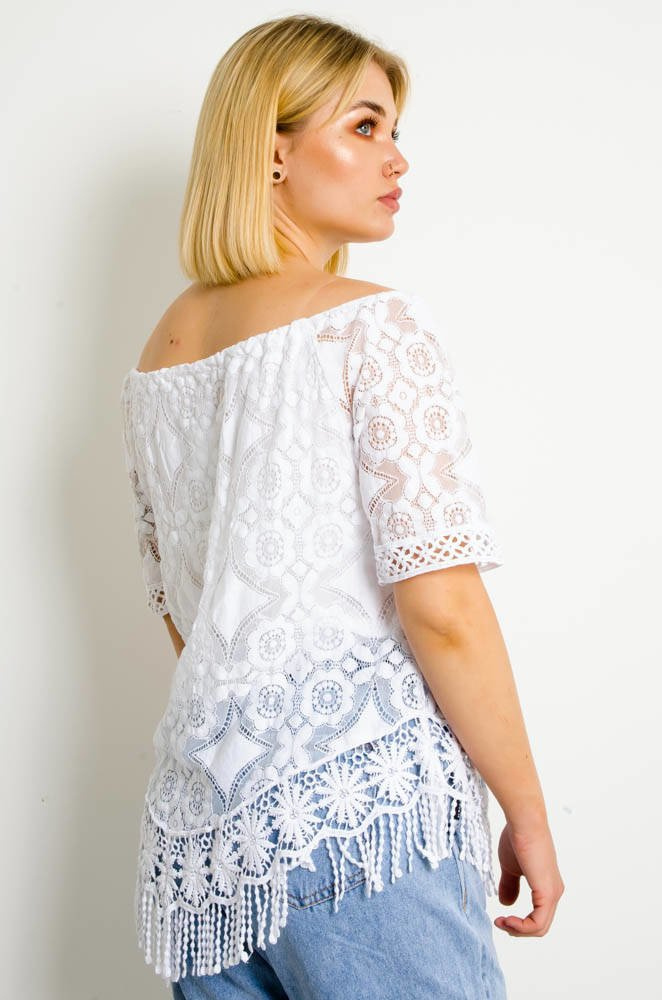 BIAŁA AŻUROWA BLUZKA Z FRĘDZLAMI NA DOLE