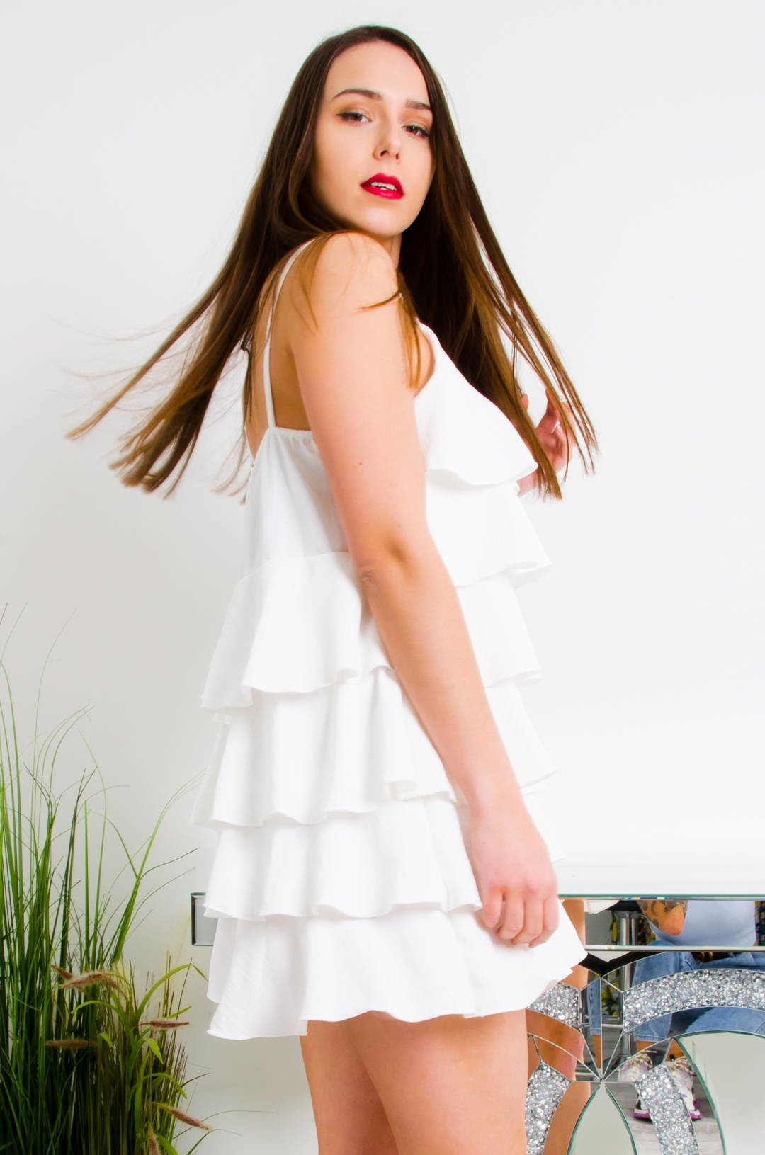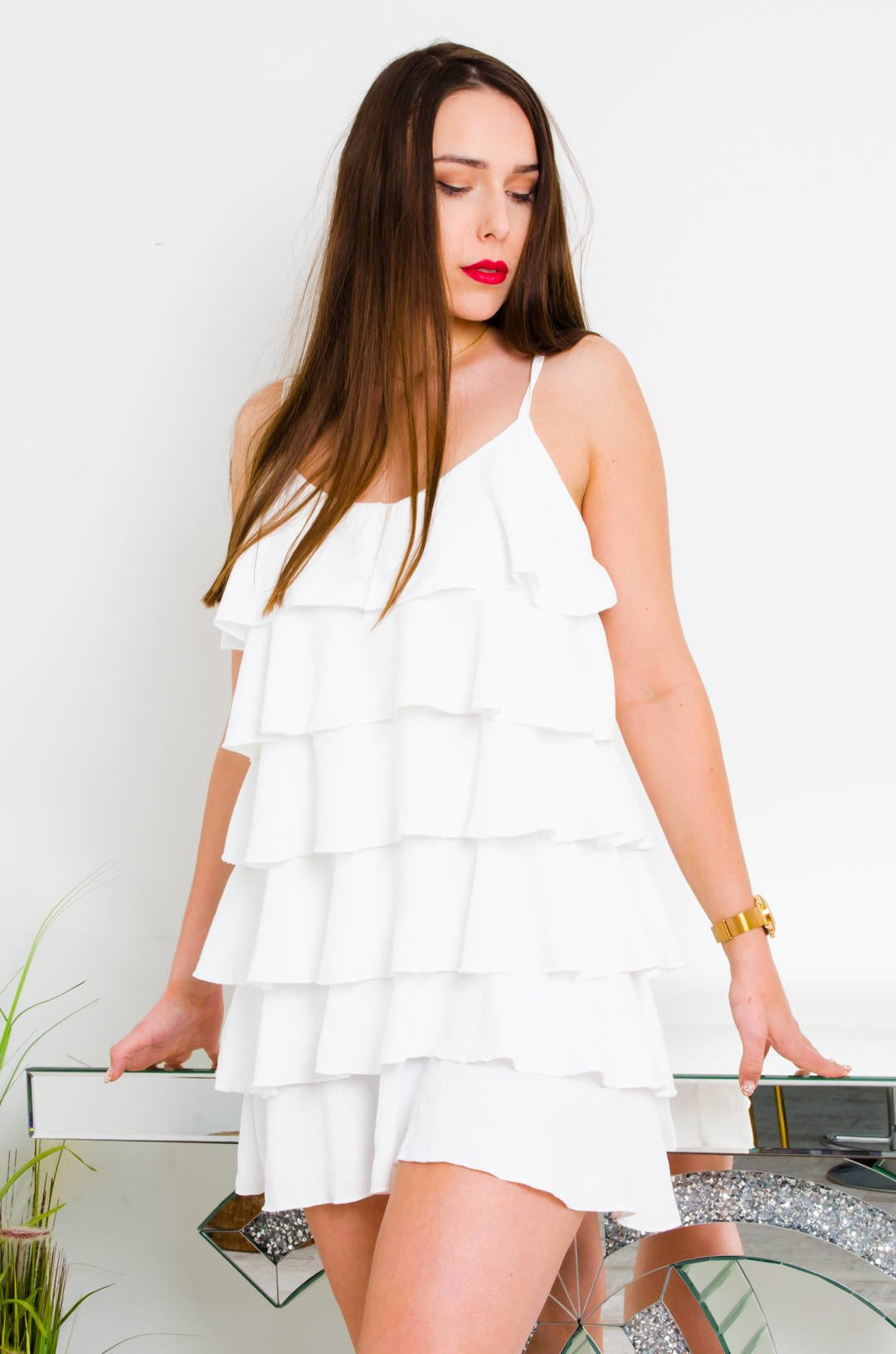 BIAŁA WARSTWOWA TUNIKA NA RAMIĄCZKACH