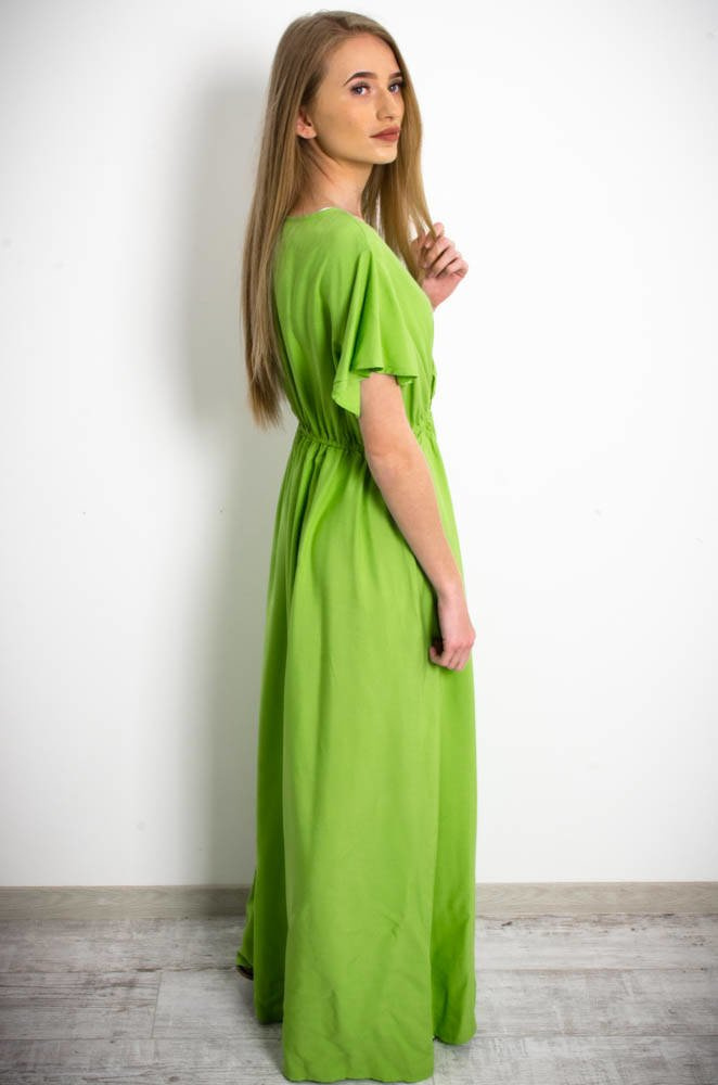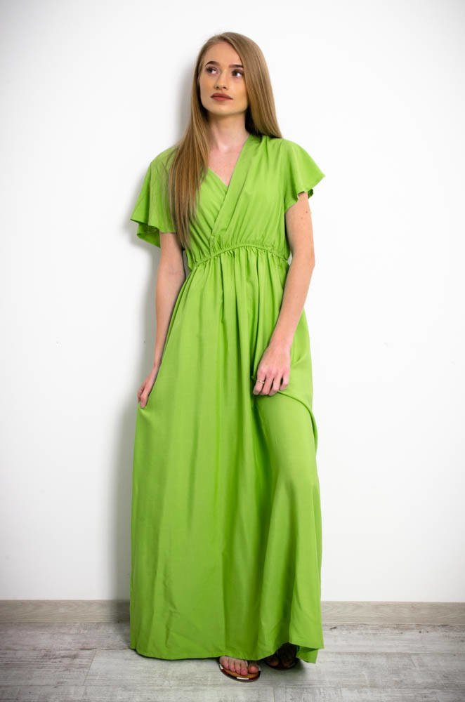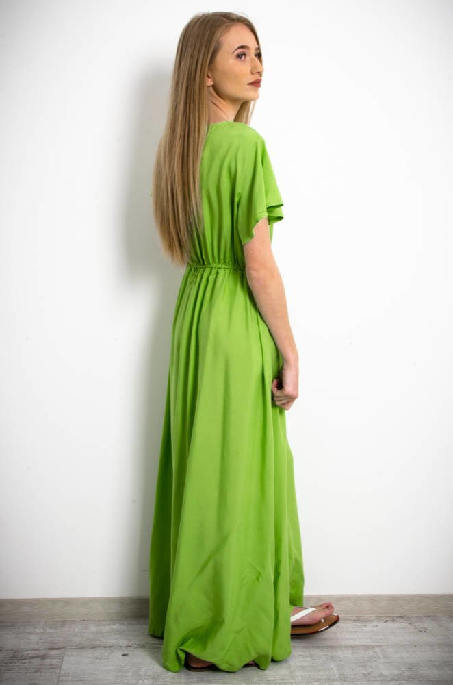 DŁUGA SUKIENKA MAXI Z KOPERTOWYM DEKOLTEM W KOLORZE ZIELONYM