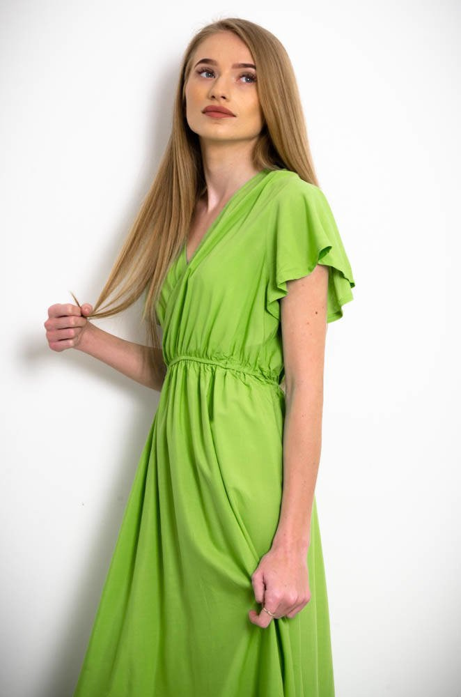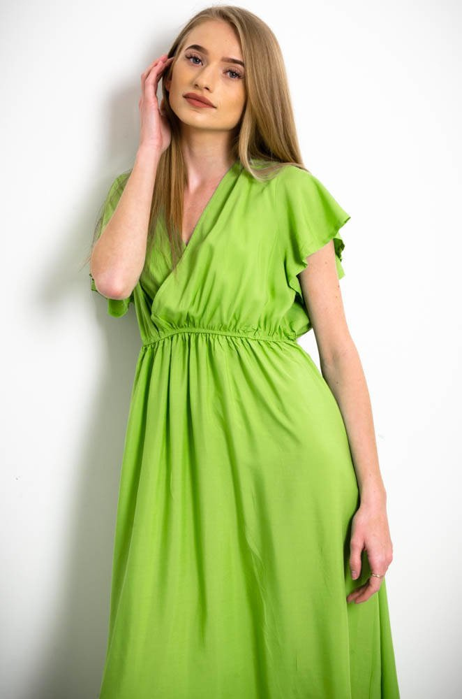 DŁUGA SUKIENKA MAXI Z KOPERTOWYM DEKOLTEM W KOLORZE ZIELONYM