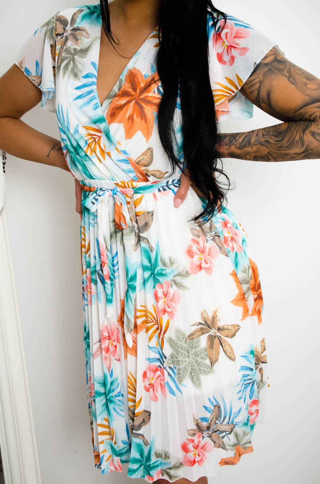 BIAŁA SUKIENKA W POMARAŃCZOWE KWIATY