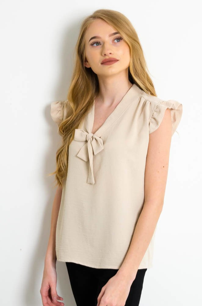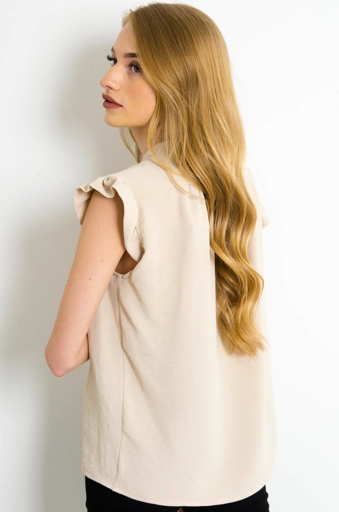 BEŻOWA ELEGANCKA BLUZKA KOSZULOWA Z WIĄZANIEM
