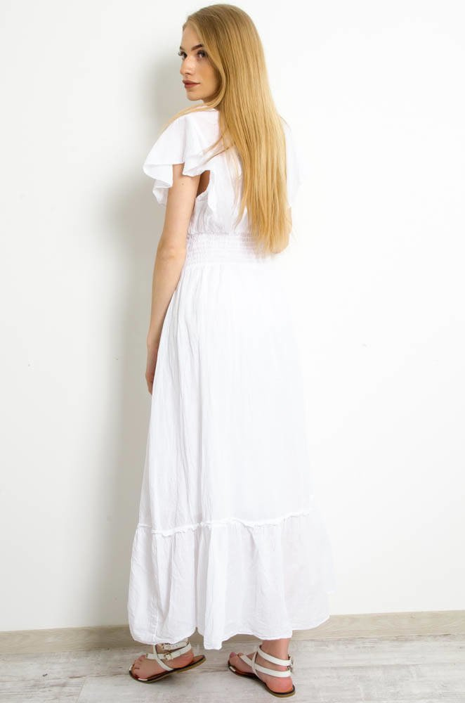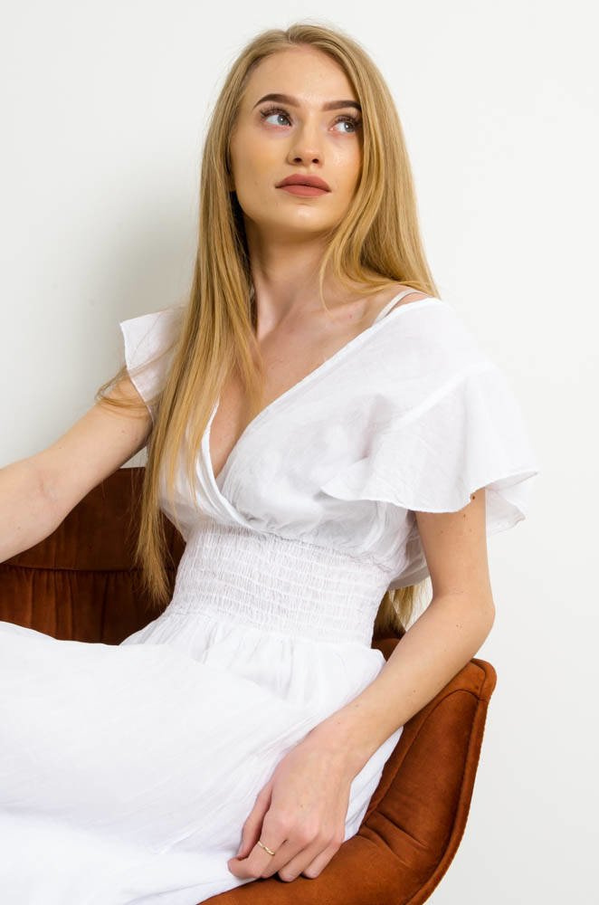 BIAŁA DŁUGA MUŚLINOWA SUKIENKA NA ZAKŁĄDKĘ MAXI