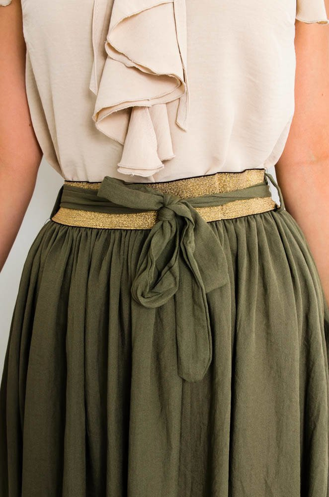 ZIELONA SPÓDNICA MAXI Z WIĄZANIEM-ZŁOTA GUMA W PASIE