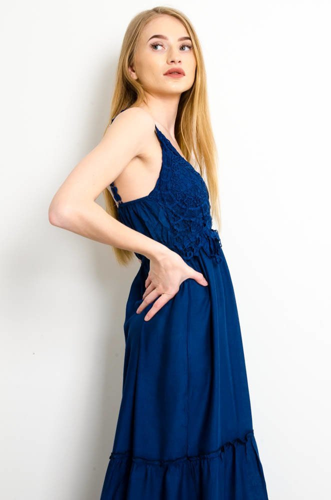 GRANATOWA SUKIENKA MAXI NA RAMIĄCZKACH Z AŻUROWĄ GÓRĄ