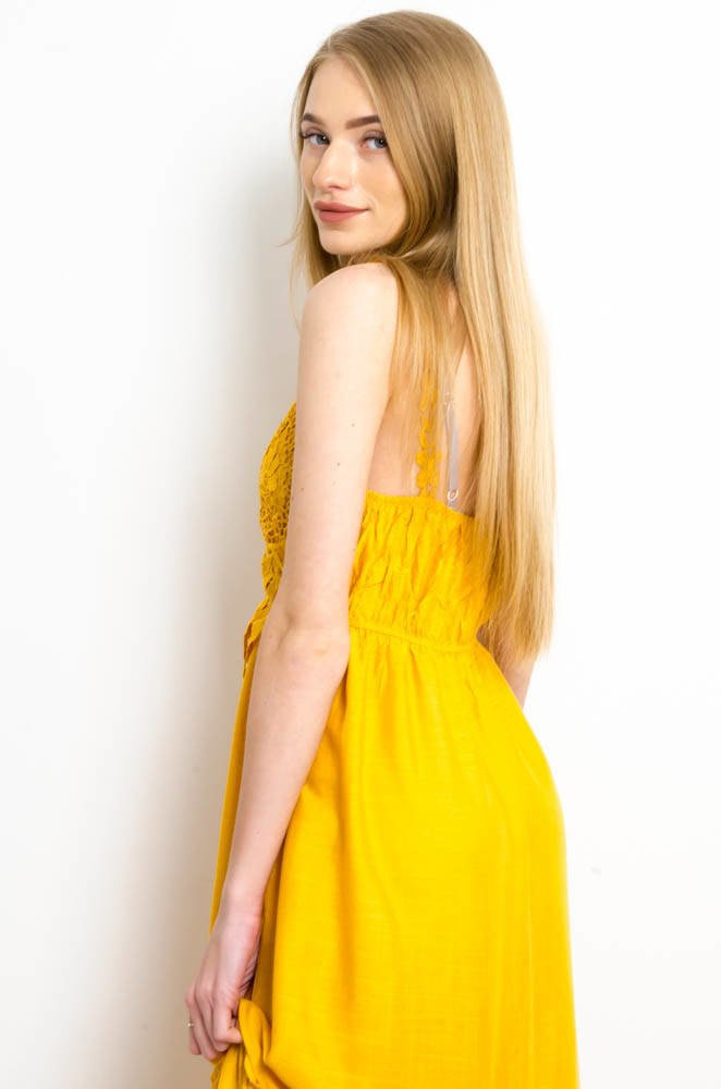 ŻÓŁTA SUKIENKA MAXI NA RAMIĄCZKACH Z AŻUROWĄ GÓRĄ