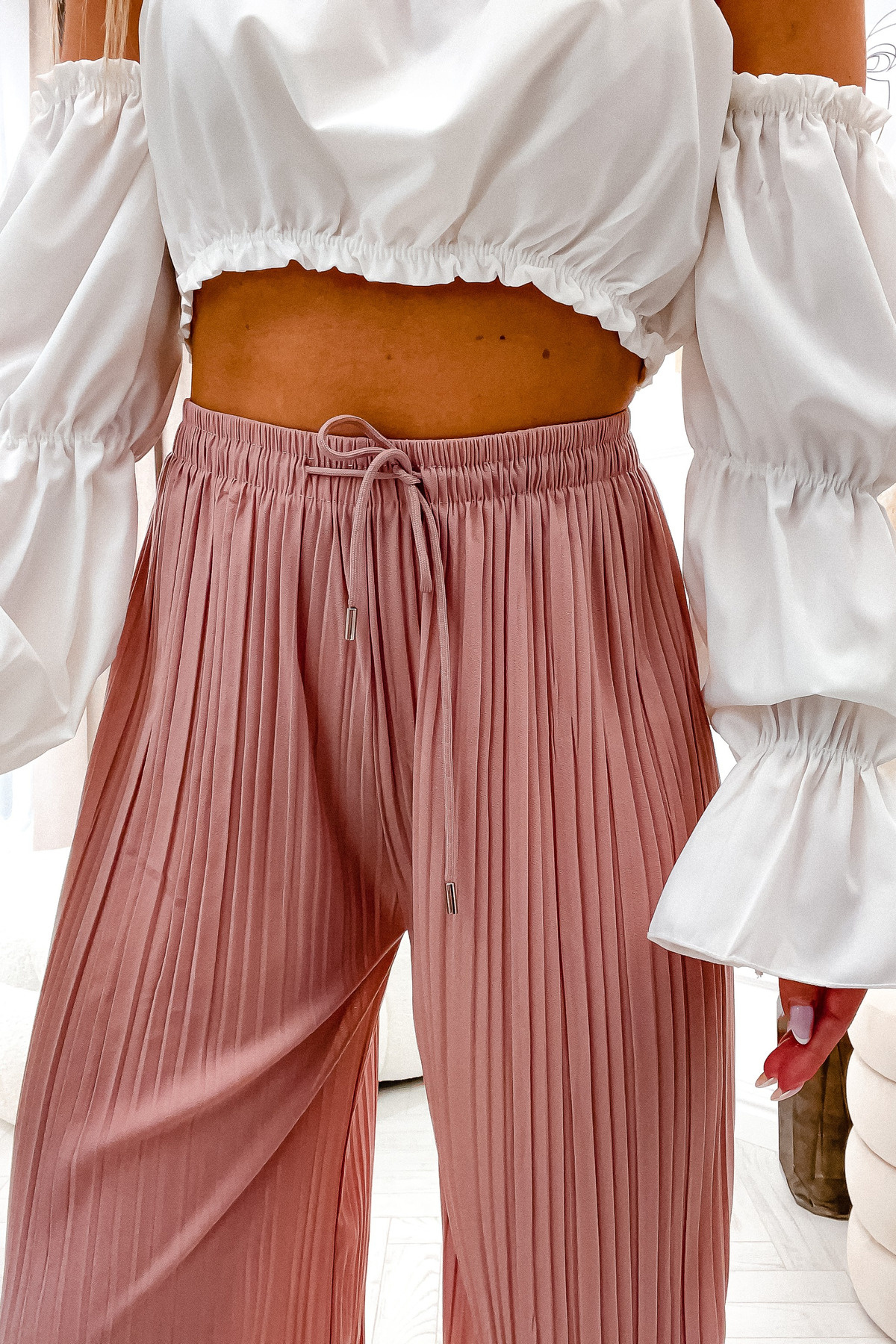 RÓŻOWE SPODNIE Z SZEROKIMI PLISOWANYMI NOGAWKAMI-WYSOKI STAN