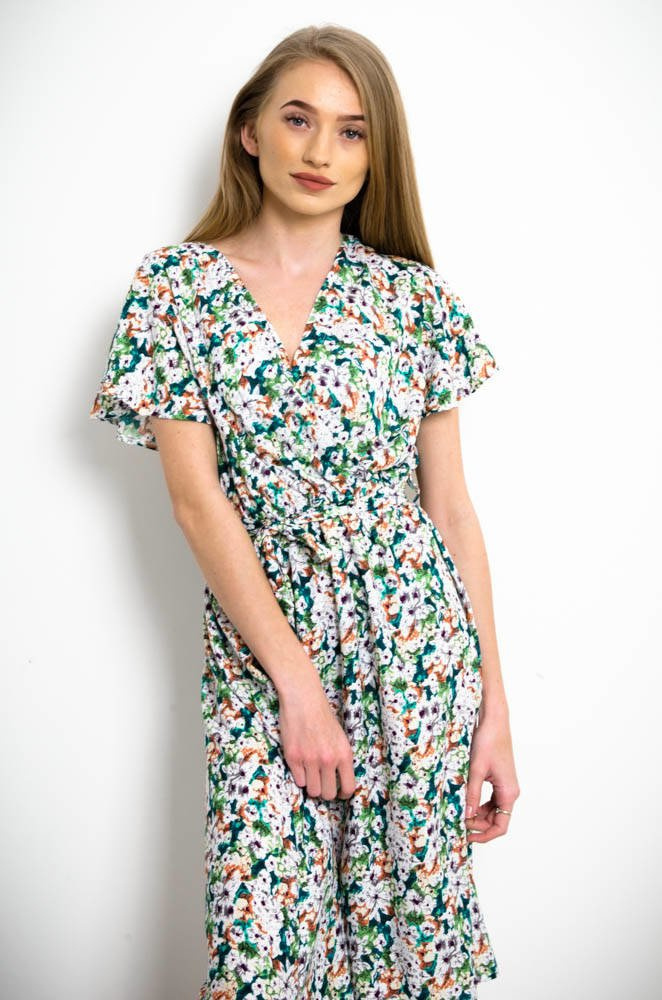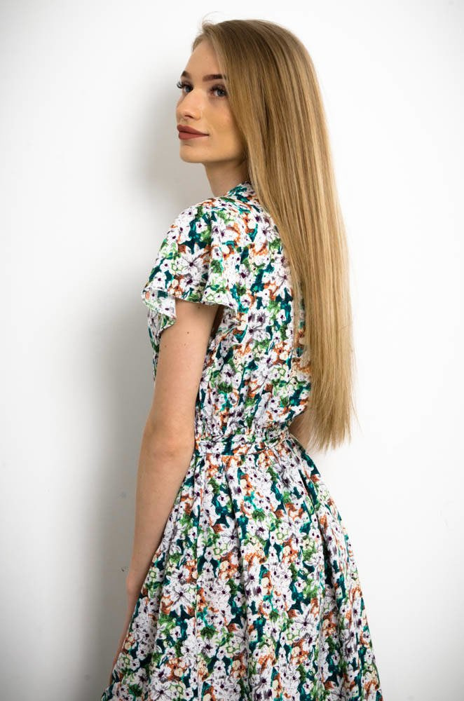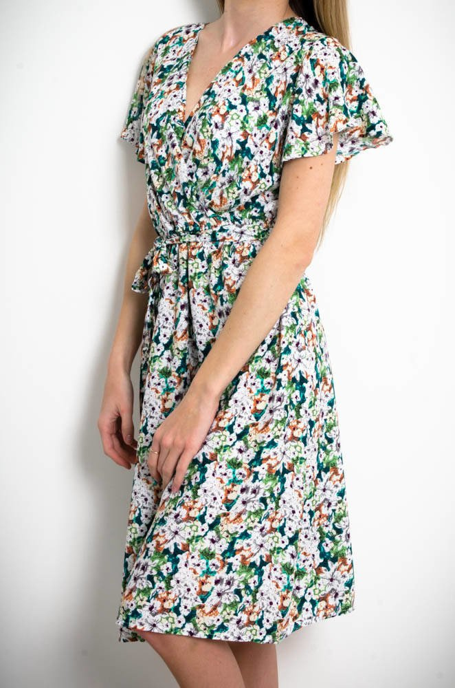 ZIELONA KWIECISTA SUKIENKA Z FALBANKĄ W RĘKAWACH