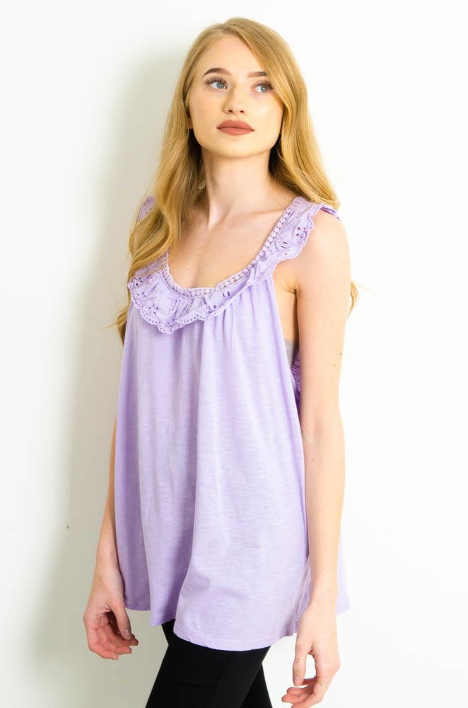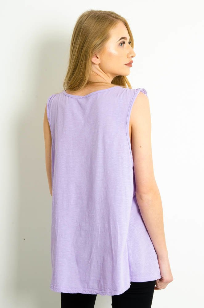 FIOLETOWY BAWEŁNIANY TOP Z AŻUROWYM DEKOLTEM