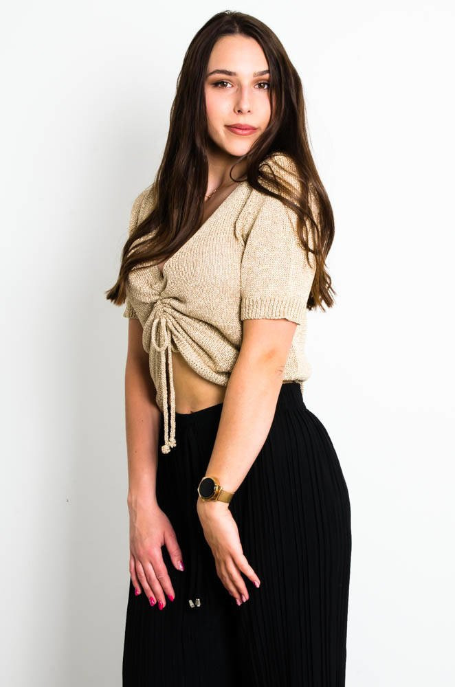 ZŁOTY SWETEREK TOP WIĄZANY- PRZÓD/TYŁ
