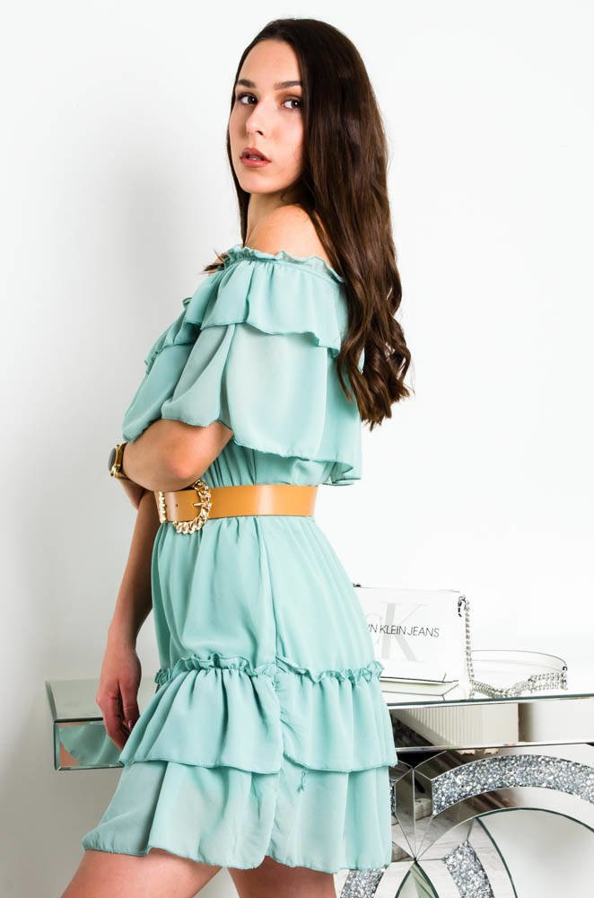 ZIELONA SUKIENKA HISZPANKA Z GUMĄ W PASIE