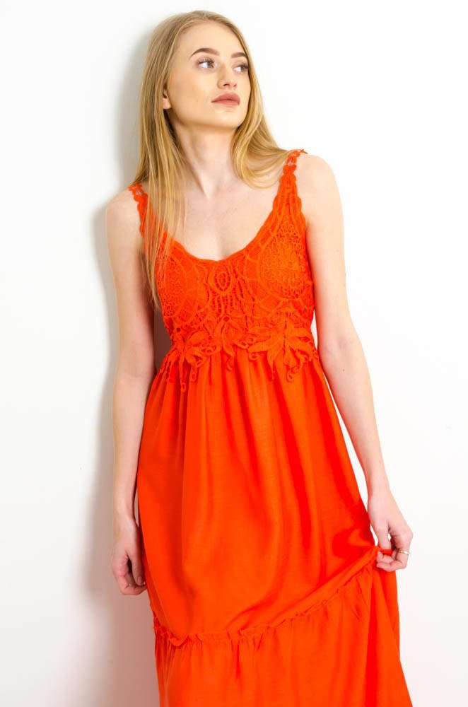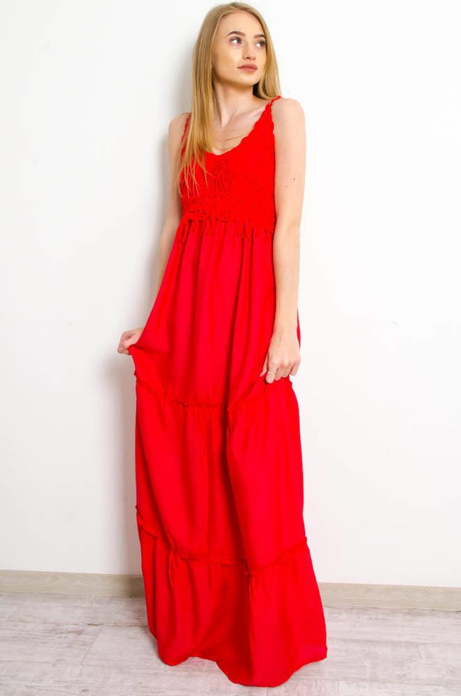 CZERWONA SUKIENKA MAXI NA RAMIĄCZKACH Z AŻUROWĄ GÓRĄ