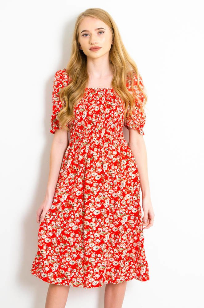 ŻÓŁTA SUKIENKA Z BUFKAMI W DROBNE KWIATY