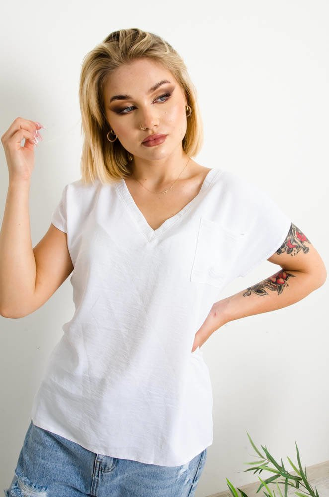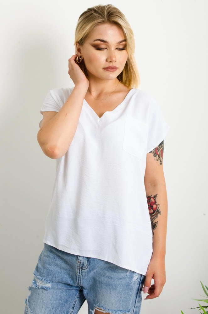 BIAŁA BLUZKA Z DEKOLTEM W SZPIC