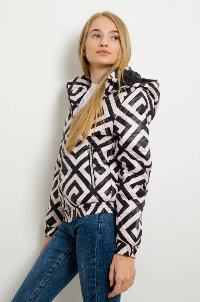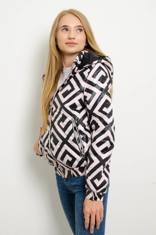 RÓŻOWO-CZARNA KURTKA ZE WZOREM