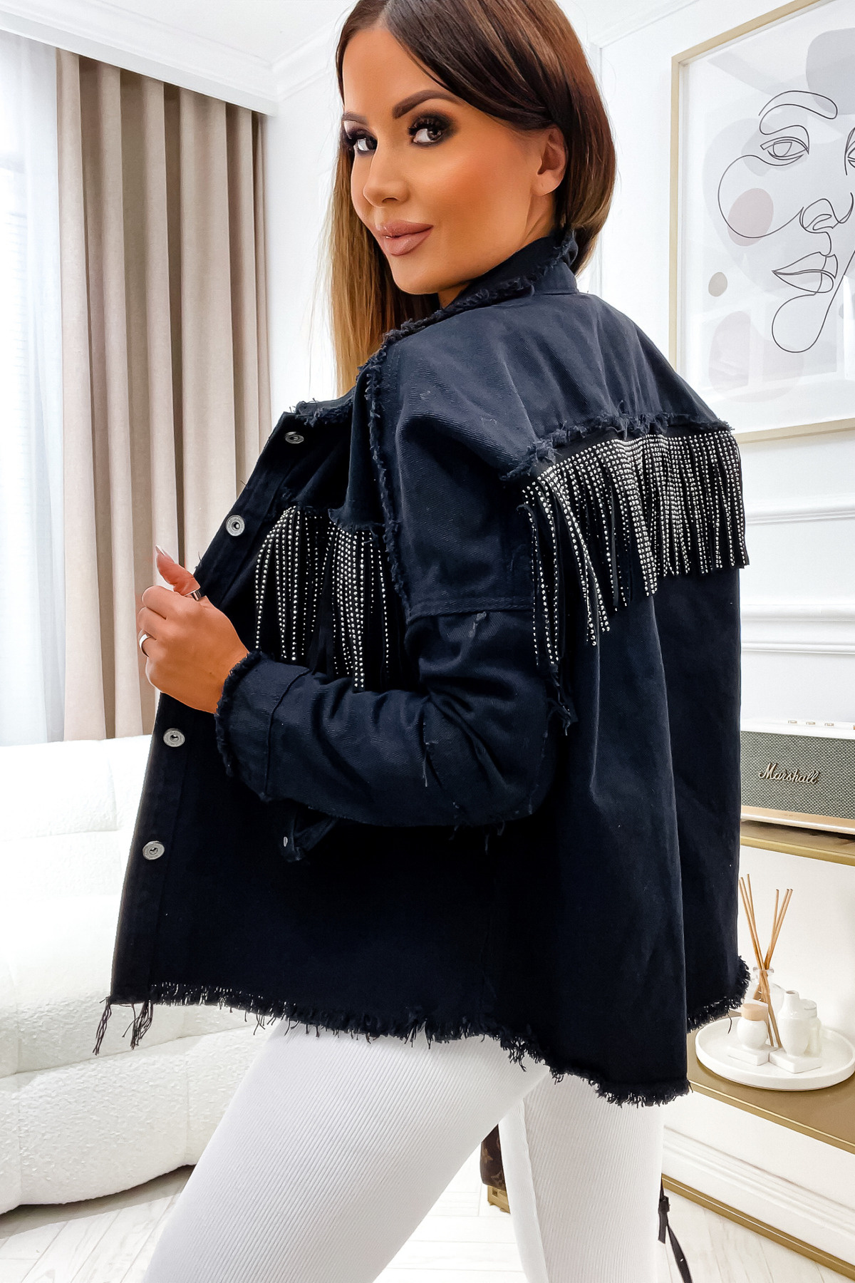 CZARNA KURTKA JEANSOWA Z FRĘDZLAMI