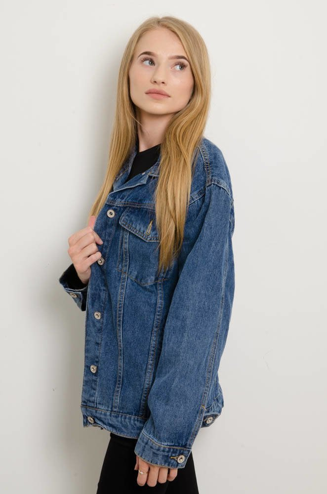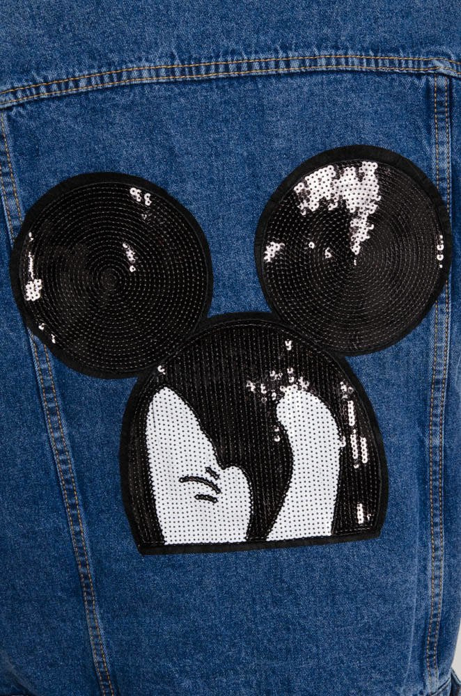 NIEBIESKA KURTKA JEANSOWA Z NASZYWKĄ NA PLECACH