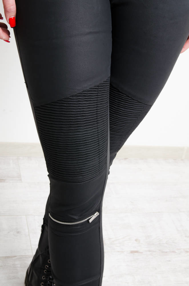 CZARNE SPODNIE WOSKOWANE Z ZAMKAMI WYSOKI STAN
