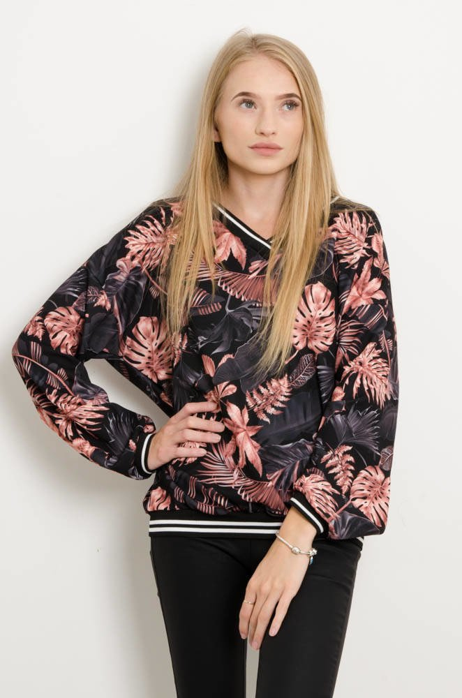 CZARNA BLUZKA W LIŚCIE Z DEKOLTEM W SZPIC