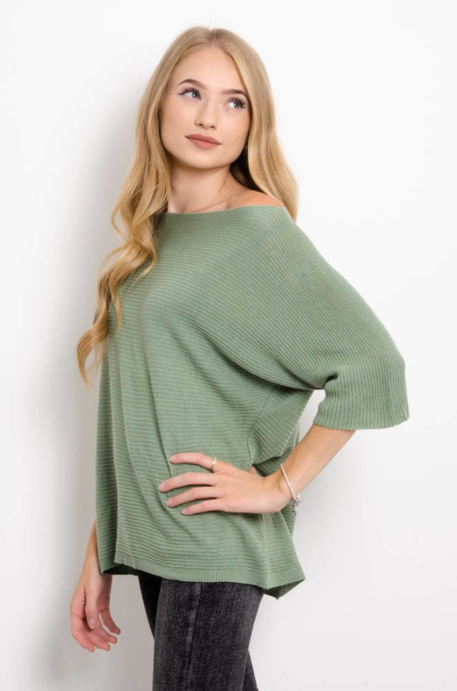 ZIELONY DZIANINOWY SWETEREK W PRĄŻEK.