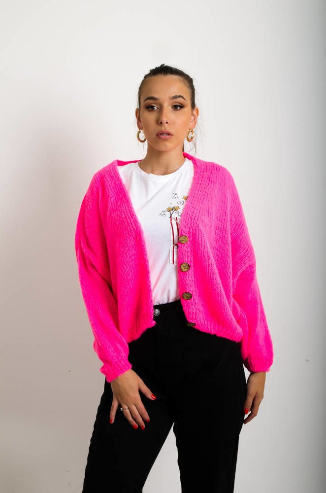 RÓŻOWY KRÓTKI KARDIGAN SWETER ZAPINANY NA GUZIKI