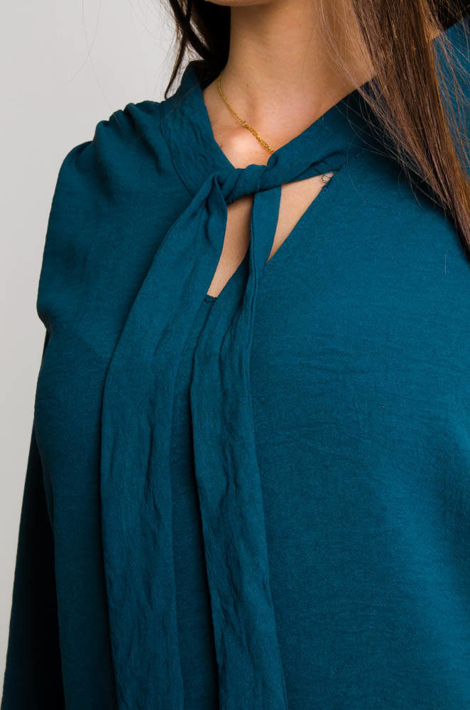 ZIELONA BLUZKA NA DŁUGI RĘKAW Z WIĄZANIEM PRZY DEKOLCIE