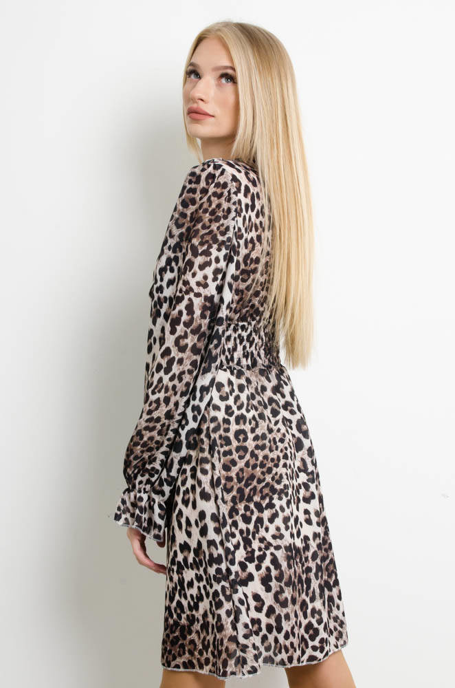 SUKIENKA Z KOPERTOWYM DEKOLTEM-WZÓR PANTERKA