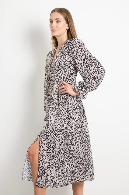 SUKIENKA MAXI BEŻOWA W CĘTKI Z ROZCIĘCIEM NA BOKU