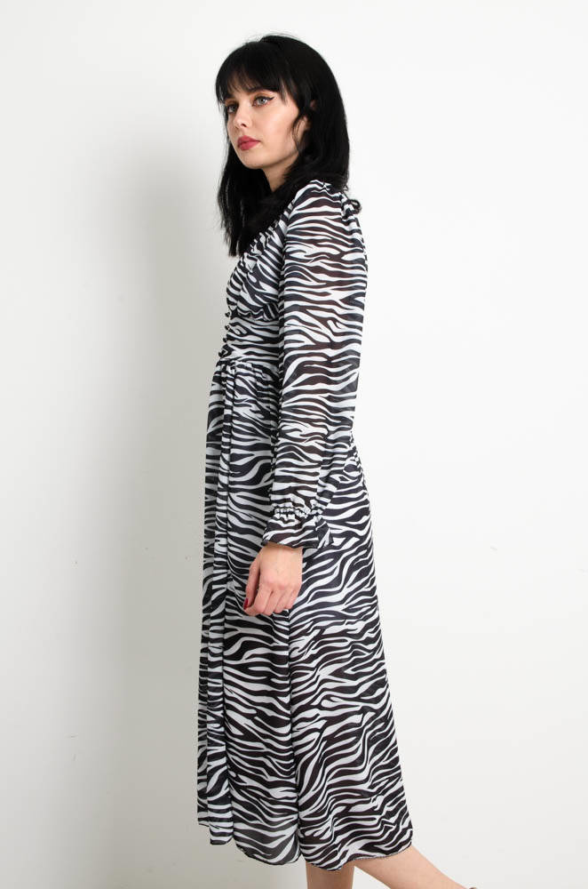 BIAŁO-CZARNA SUKIENKA MAXI Z MOTYWEM ZEBRY