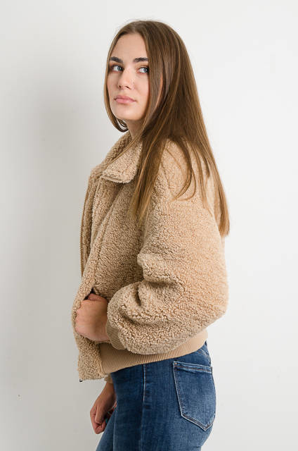 BRĄZOWA KURTKA BOMBERKA Z KOŻUSZKIEM.