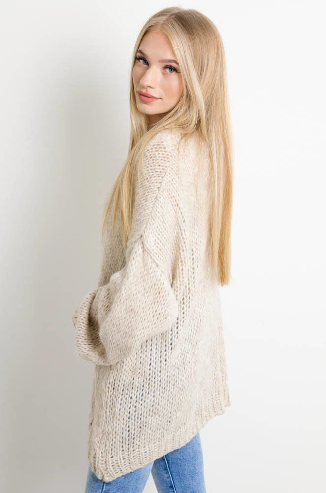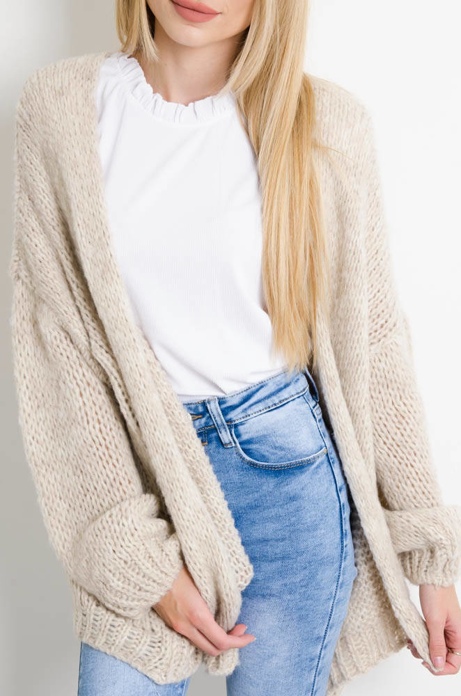 BEŻOWA NARZUTKA -SWETER OVERSIZE