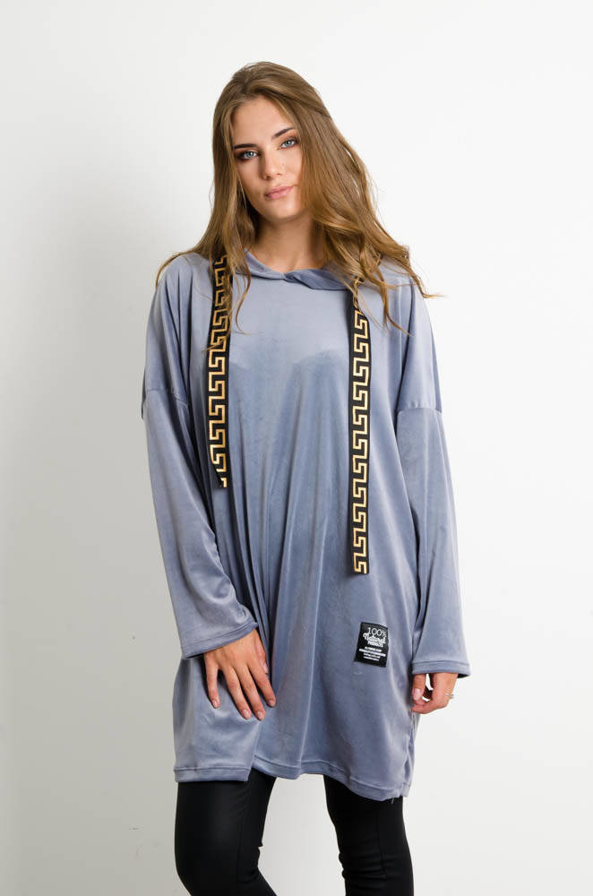 SZARA WELUROWA SUKIENKA Z KAPTUREM