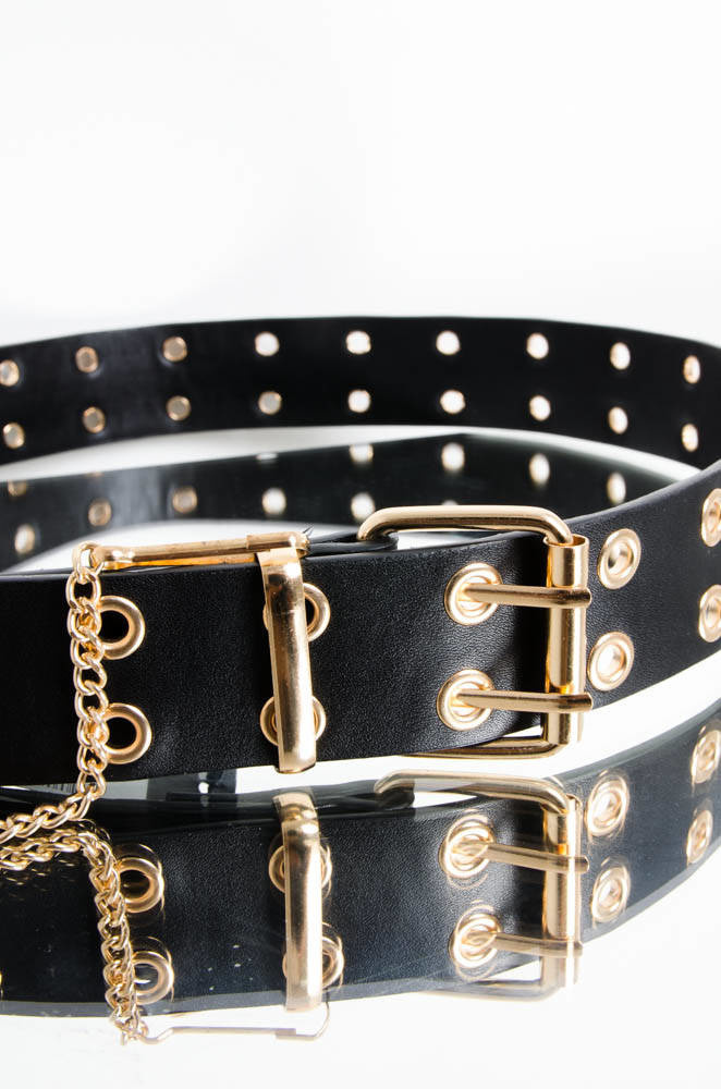 CZARNY PASEK Z OZDOBNYMI KÓŁKAMI I ŁAŃCUSZKIEM