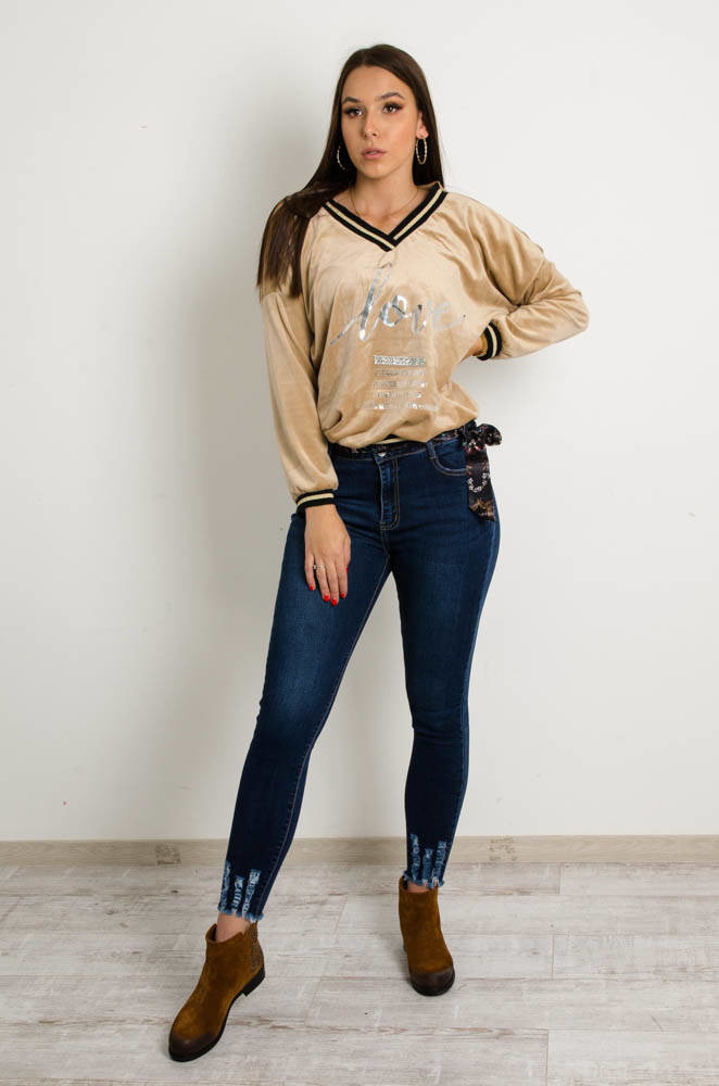 SPODNIE JEANSOWE Z PRZETARCIAMI NA DOLE NOGAWKI-PASEK W ZESTAWIE