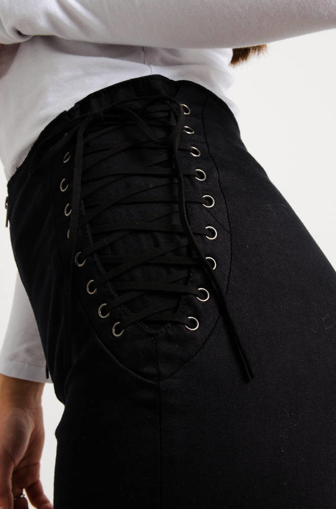 CZARNE WYSZCZUPLAJĄCE SPODNIE Z WIĄZANIAMI PO BOKACH-WYSOKI STAN